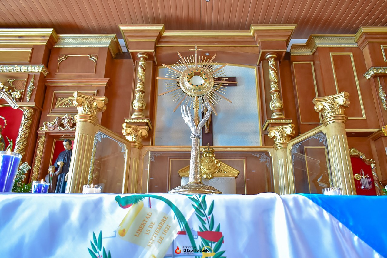 Como un detalle especial, por ser el día en que celebramos la independencia de Guatemala, se realizó un especial altar, teniendo como un detalle particular, la bandera de nuestro país a los pies de Jesús Sacramentado, como símbolo de que Él es el dueño de nuestro país y solamente Él puede protegerlo de todo peligro. Así mismo, se han colocado velas en colores blanco y azul, como símbolo de cada uno de los guatemaltecos y de esa esperanza que depositan en Jesús.