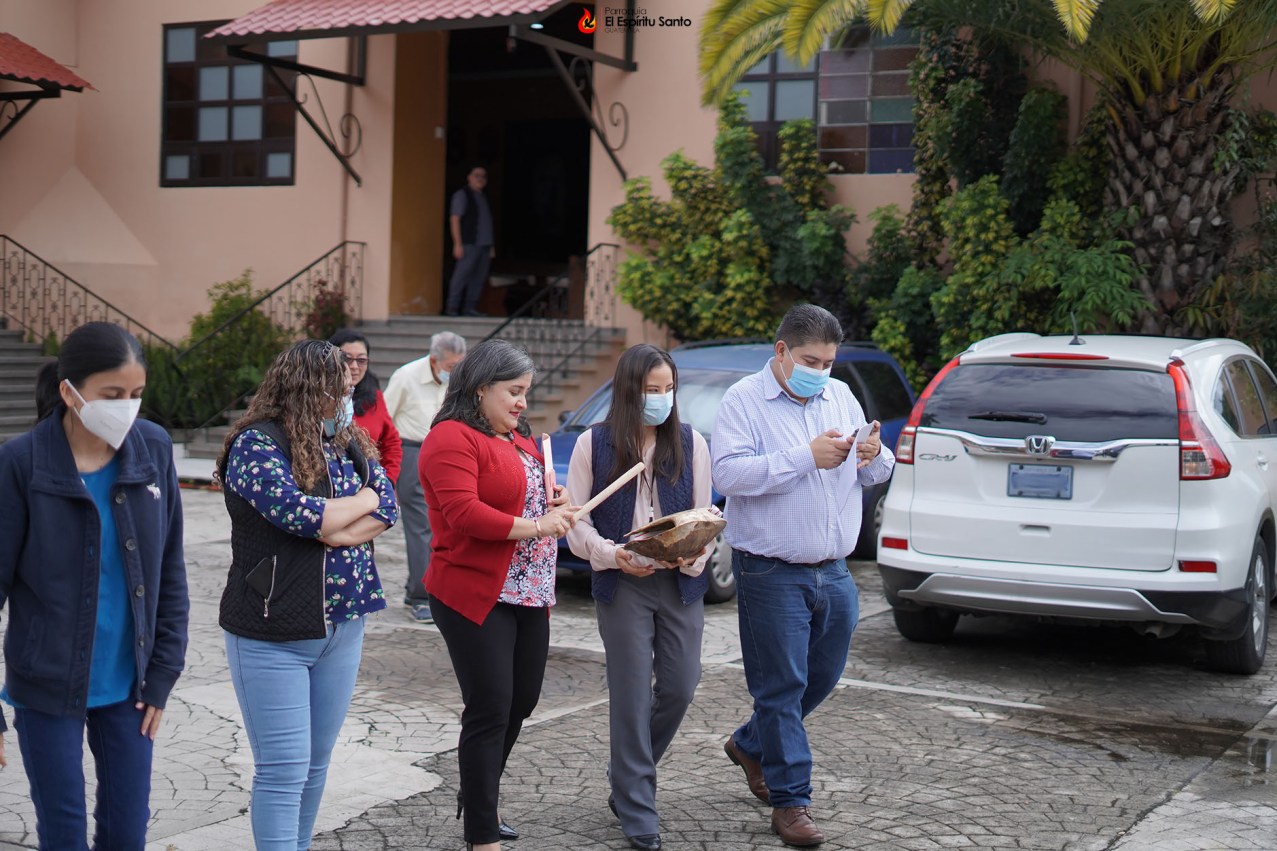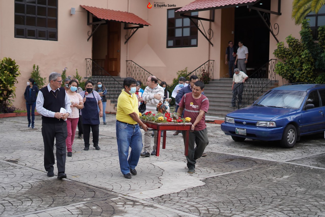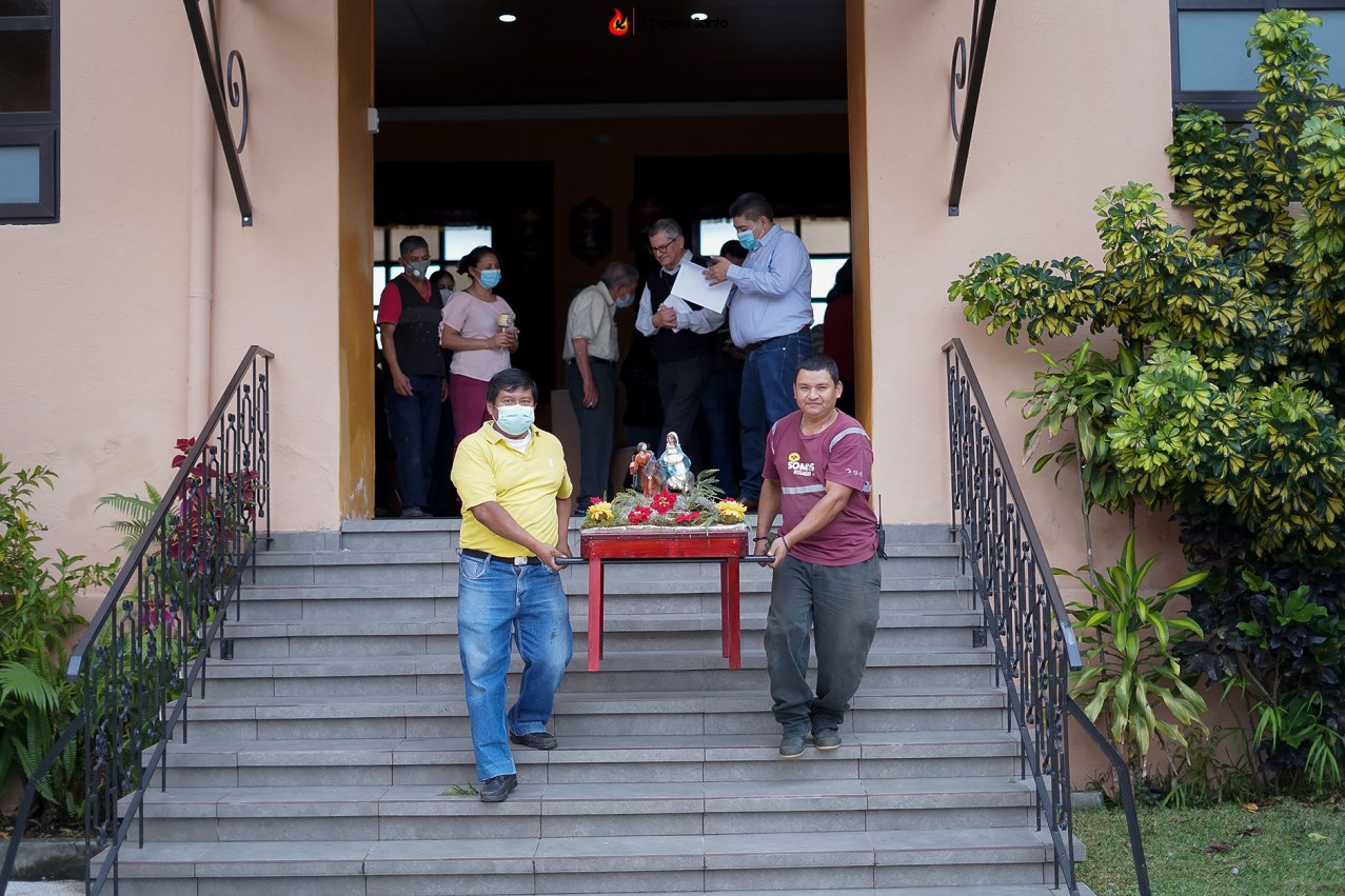 Cada día, la posada visitará una de las diferentes oficinas; en esta oportunidad, la posada dio inicio en el interior del templo parroquial, en donde fueron bendecidas, por el Padre Rolando Echeverría, SDB, las nuevas imágenes que se utilizarán cada año para las posadas, así como una pequeña anda para transportarlas. La primera oficina en visitar este año fue la de nuestro Padre Inspector Ángel Prado, SDB. El recorrido fue acompañado por el sonar de tortugas y chinchines, además del tradicional canto mientras se llama a la puerta.