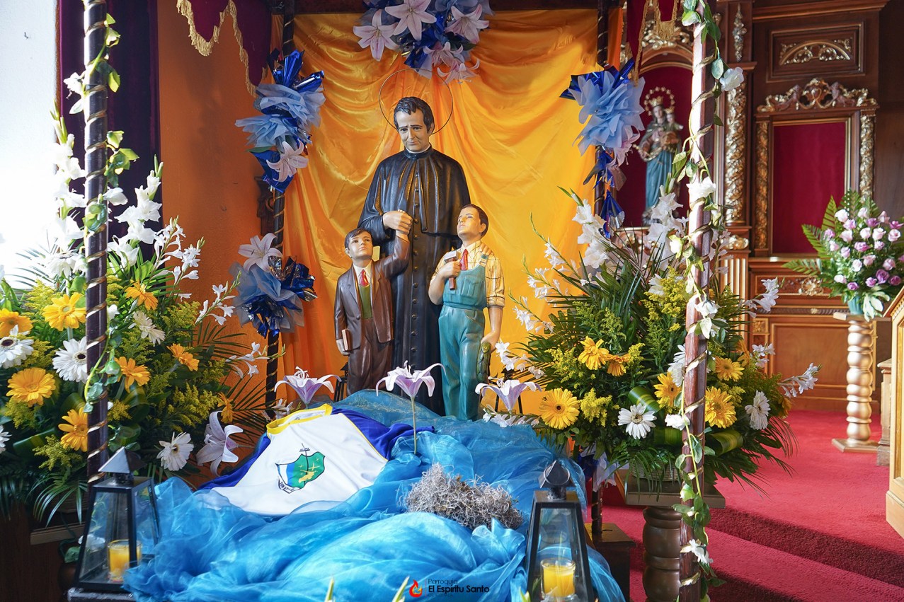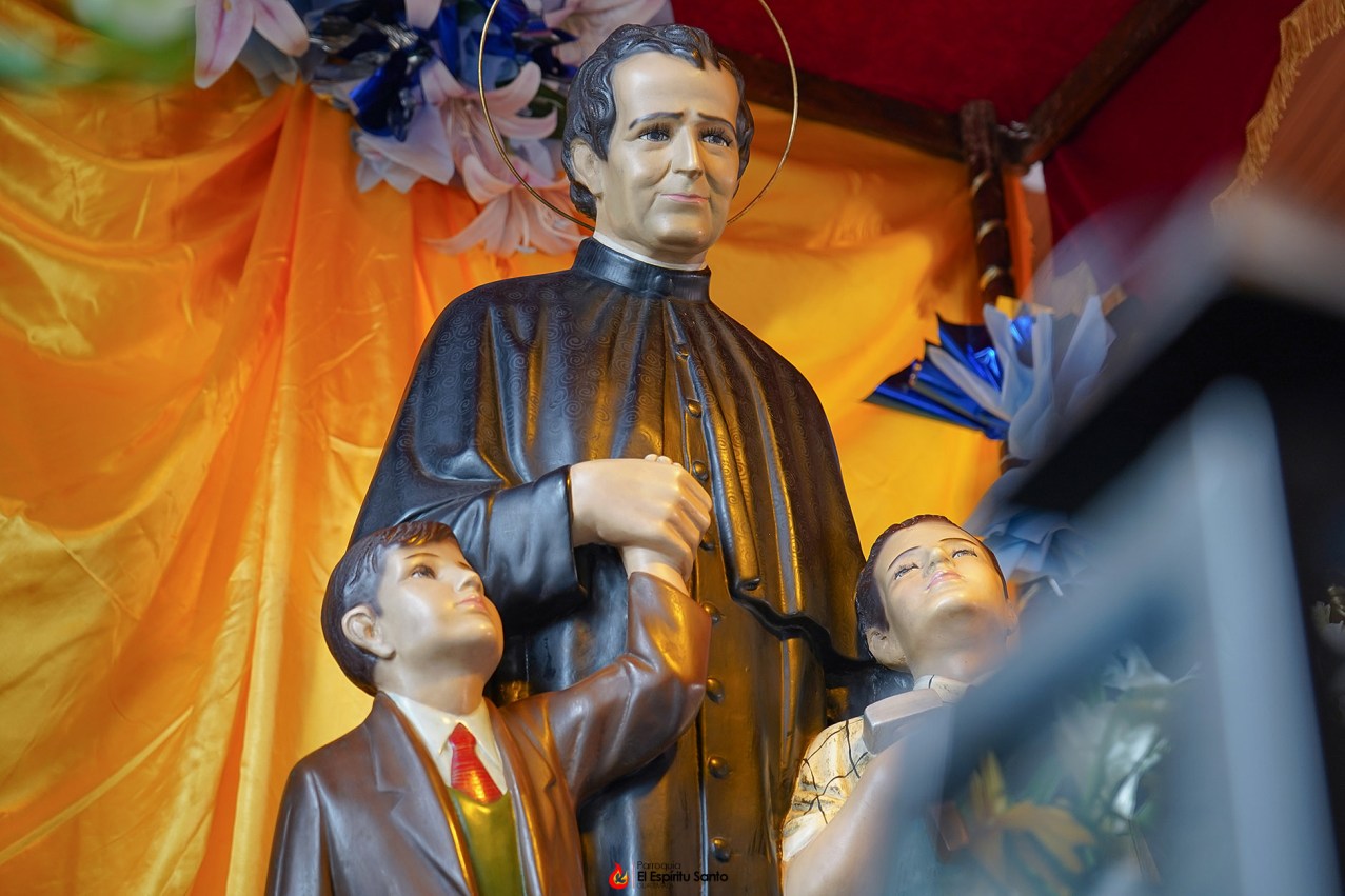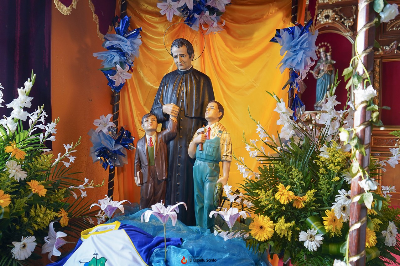 La imagen de Don Bosco, Padre y Maestro de la juventud, se encuentra ya listo en su anda para la fiesta del próximo martes, 31 de enero.