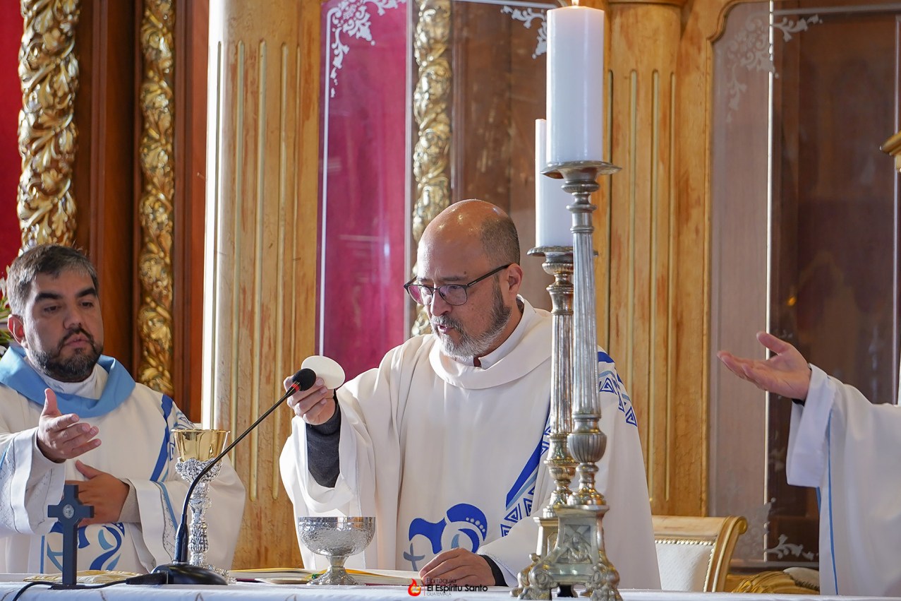 El padre Hugo indicó, durante la homilía, que los santos, para nosotros los creyentes, son modelos de fe. Cada uno es distinto, en base al tiempo en que vivió, el lugar, etc, sin embargo, todos son modelos de como debemos vivir nuestra fe. En el caso de Don Bosco, podemos determinar algunos rasgos principales.