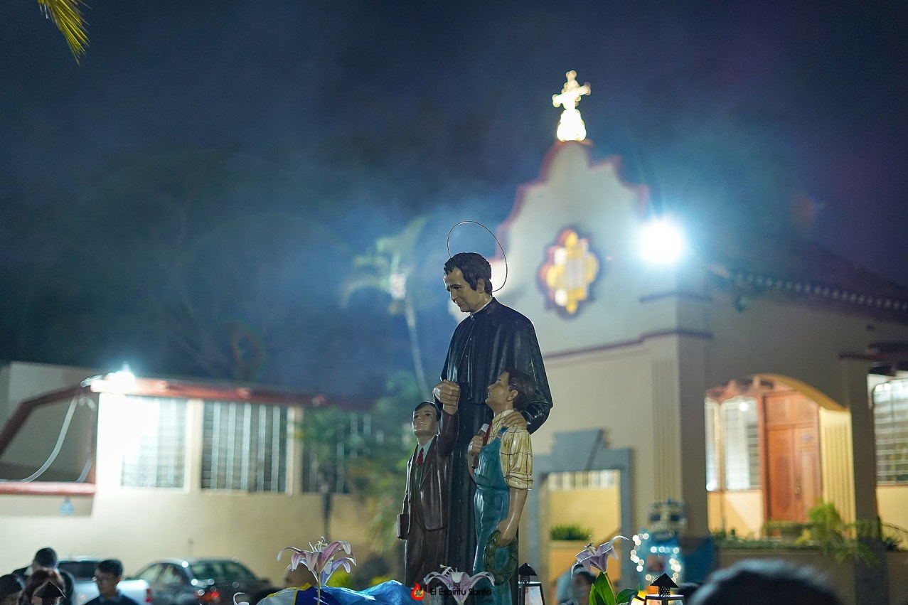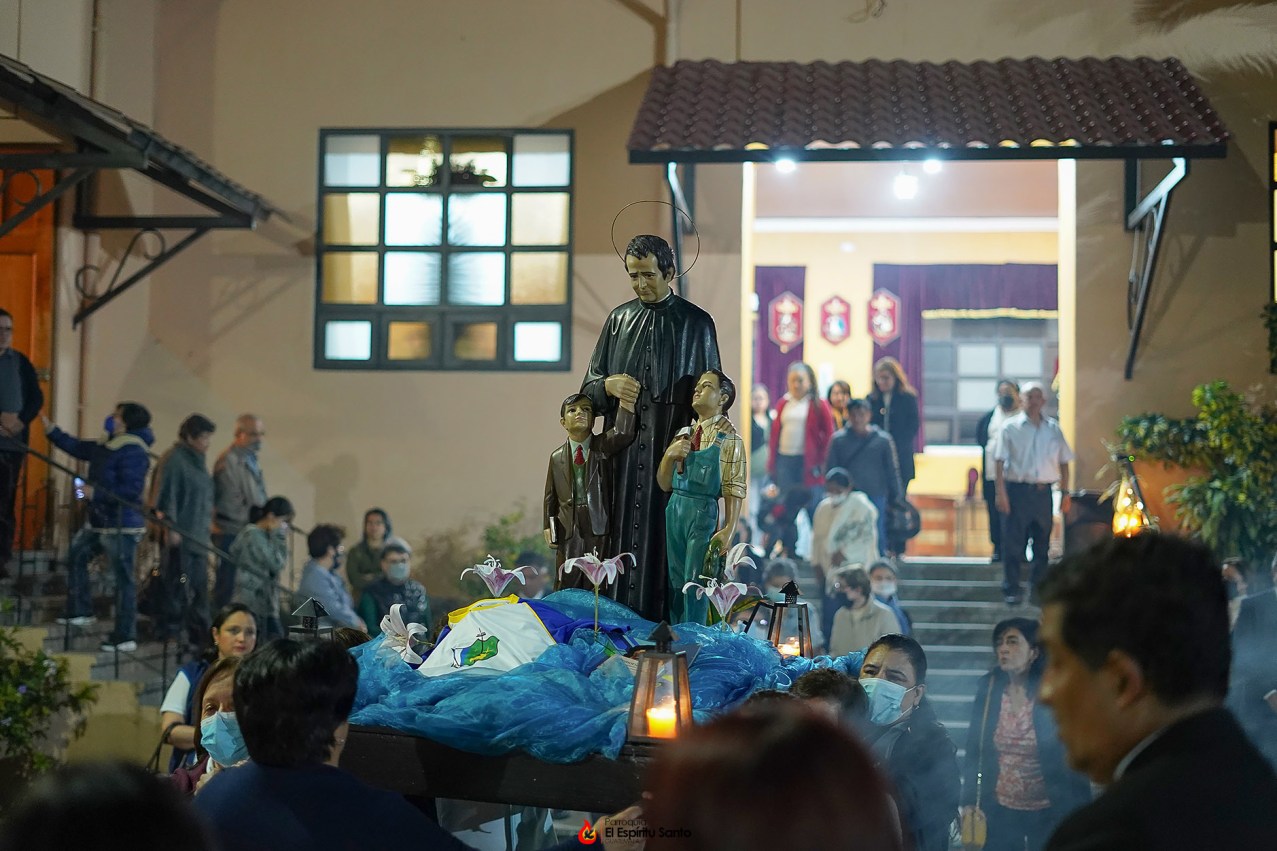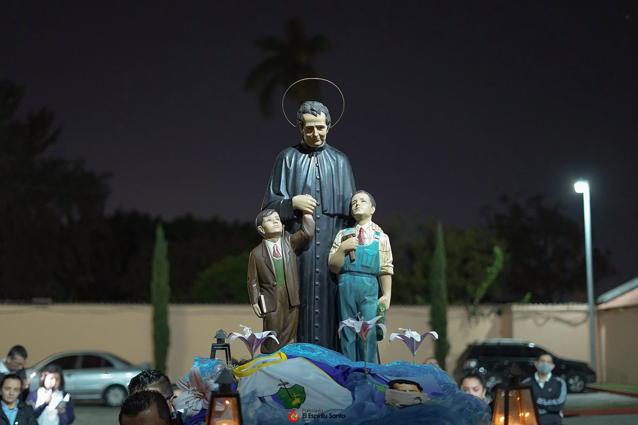 La fiesta del «Santo de los jóvenes», en la Parroquia El Espíritu Santo, dio inicio con la festiva procesión con la imagen de Don Bosco, que recorrió el parqueo interno, visitando tres altares elaborados por los diferentes grupos parroquiales, cada uno de ellos dedicado a un sueño de Don Bosco: el sueño de los nueve años, la construcción de la iglesia de María Auxiliadora y las dos columnas. Durante la procesión se quemaron cuetes, fuegos artificiales y bombas. Al ingreso de la procesión, se celebró la Santa Misa, presidida por el padre Atilio Vásquez, SDB.