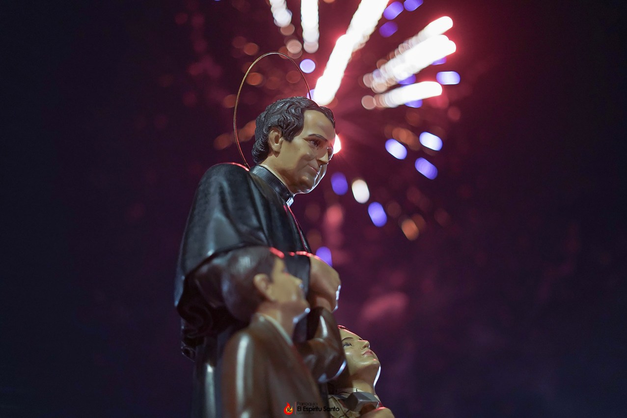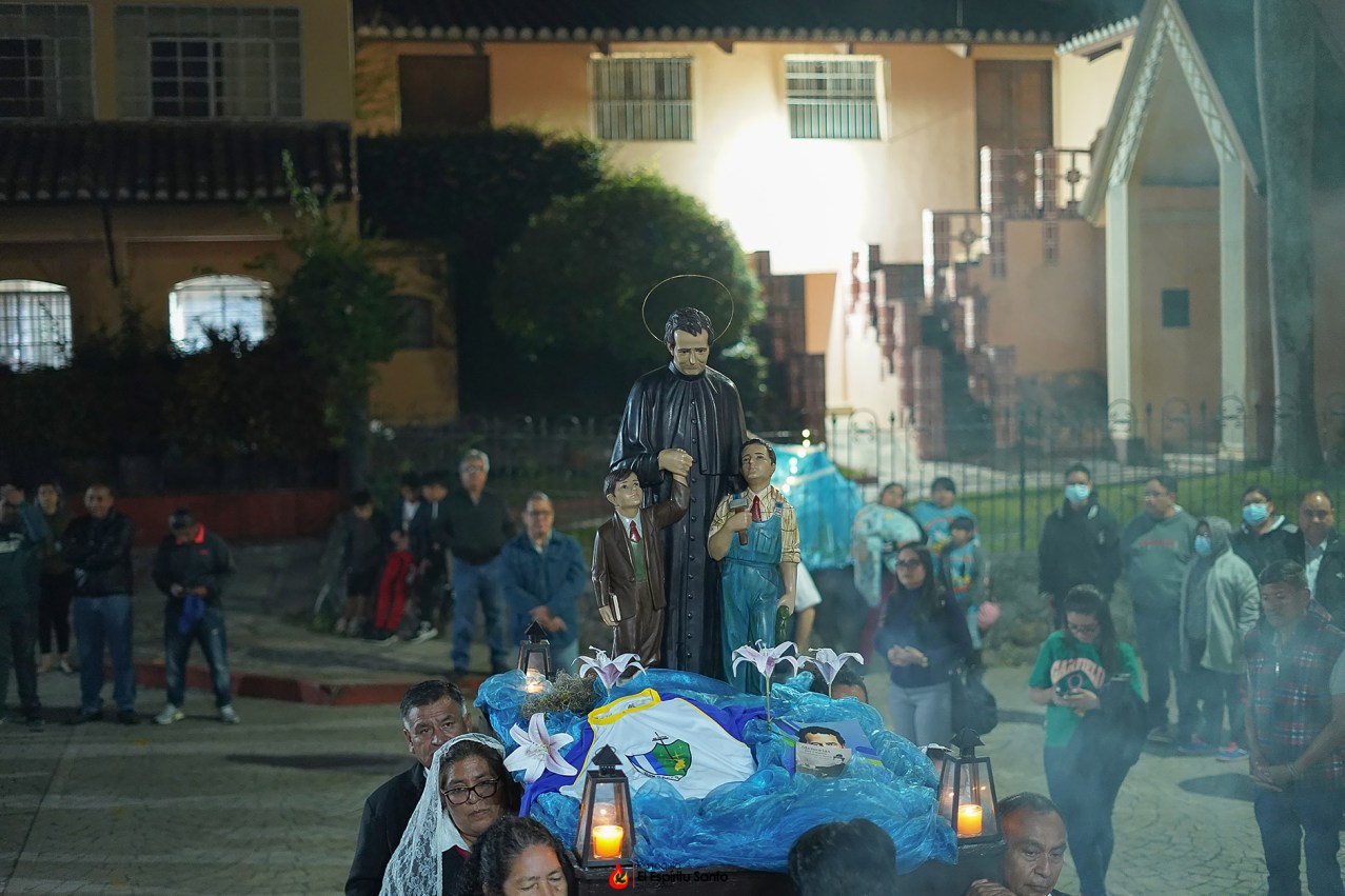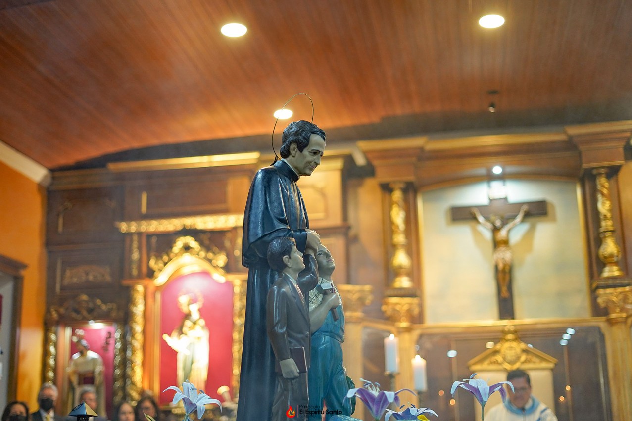 La fiesta del «Santo de los jóvenes», en la Parroquia El Espíritu Santo, dio inicio con la festiva procesión con la imagen de Don Bosco, que recorrió el parqueo interno, visitando tres altares elaborados por los diferentes grupos parroquiales, cada uno de ellos dedicado a un sueño de Don Bosco: el sueño de los nueve años, la construcción de la iglesia de María Auxiliadora y las dos columnas. Durante la procesión se quemaron cuetes, fuegos artificiales y bombas. Al ingreso de la procesión, se celebró la Santa Misa, presidida por el padre Atilio Vásquez, SDB.
