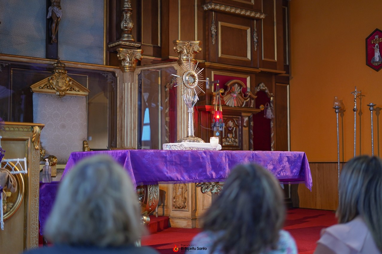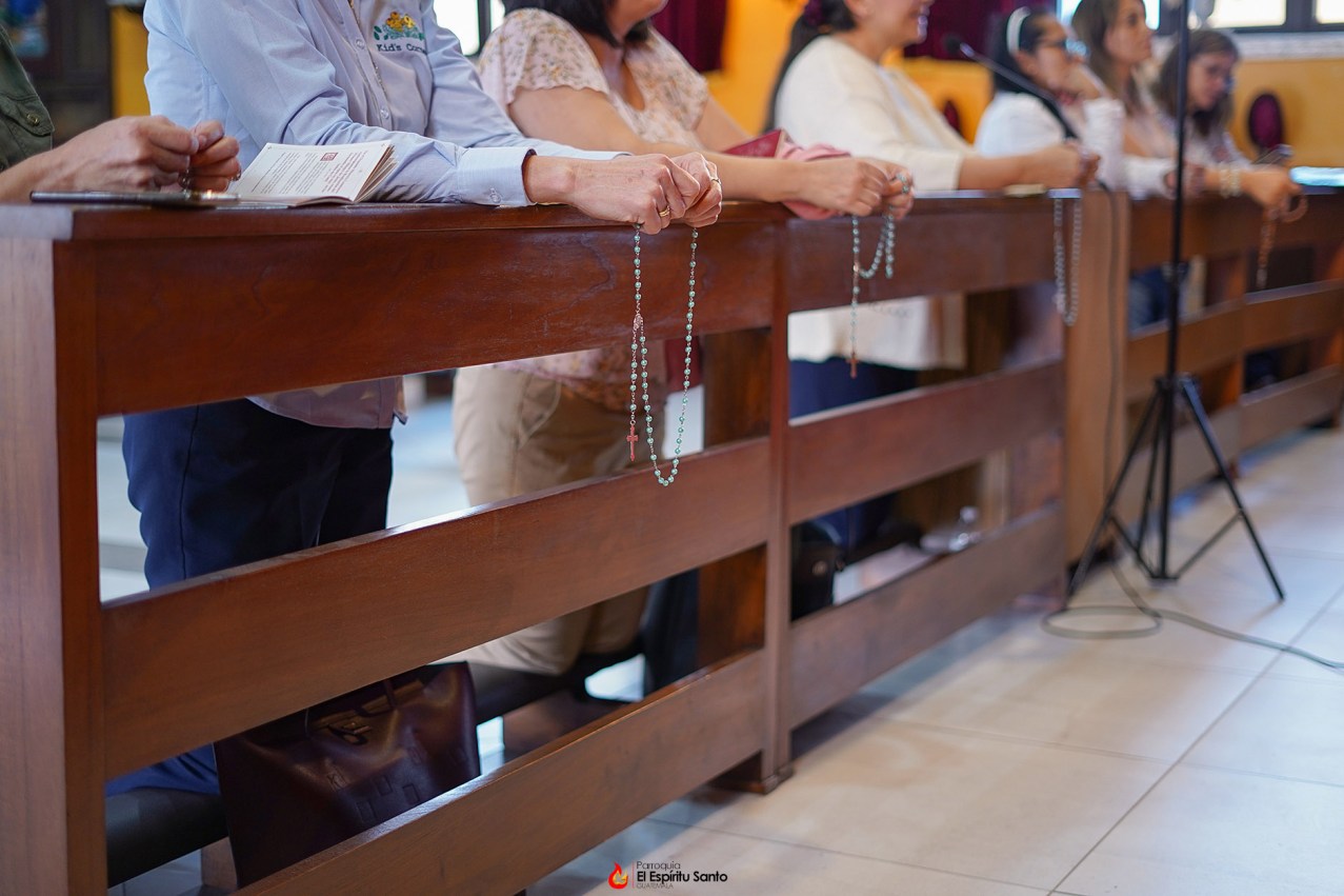Cada jueves eucarístico, el grupo de mujeres que interceden por mujeres: Dos Corazones, se da cita ante el Santísimo Sacramento para rezar el Santo Rosario y pedir por todas aquellas intenciones, súplicas y necesidades que diariamente reciben a través de WhatsApp, su grupo de Facebook, o bien, en la caja de intenciones colocada en nuestra parroquia.