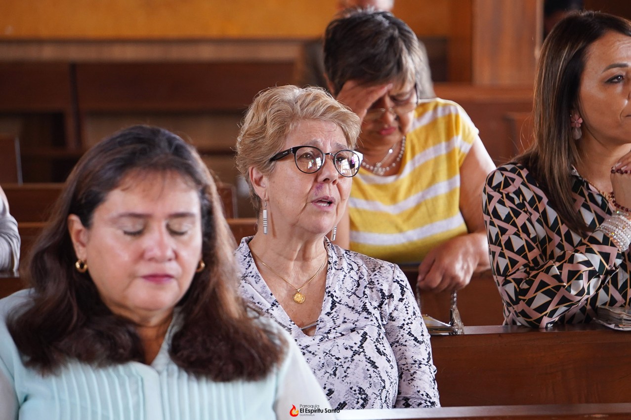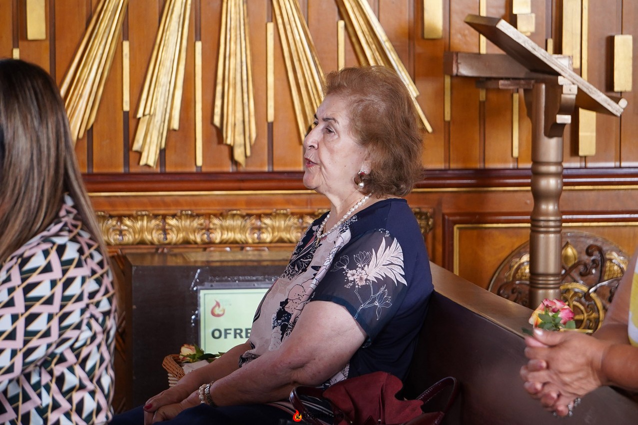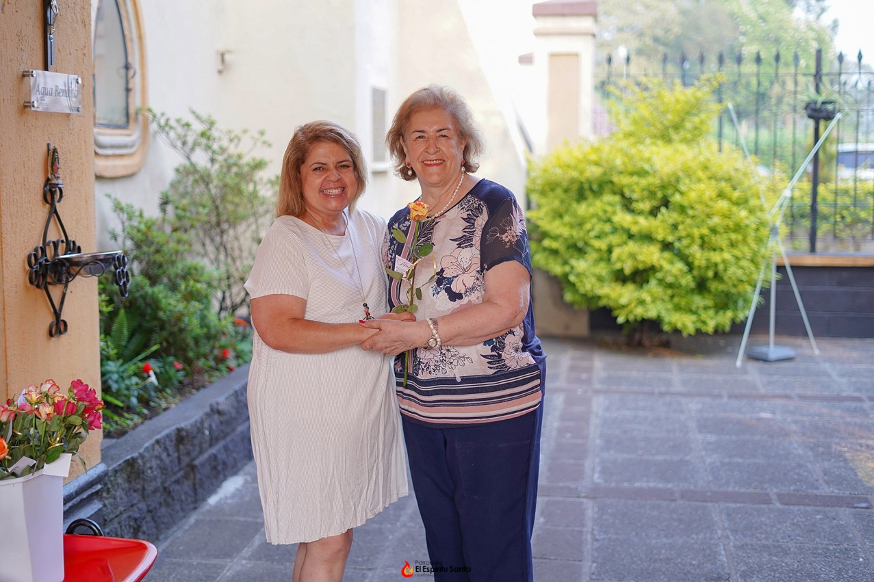 Las señoras del grupo de intercesión Dos Corazones, se ubicaron en el ingreso del templo para felicitar a cada mamá, además de entregarle una rosa y una pequeña tarjeta para hacer especial este día en que recordamos su dedicación, trabajo y cariño que brindan a sus familias.