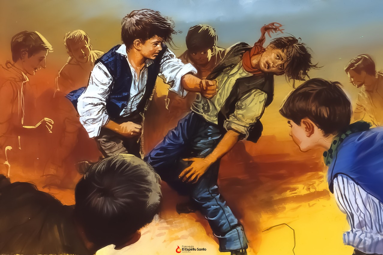 En aquel momento apareció un hombre muy respetable, de varonil aspecto, noblemente vestido. Un blanco manto le cubría de arriba abajo; pero su rostro era luminoso, tanto que no se podía fijar en él la mirada. Me llamó por mi nombre y me mandó ponerme al frente de aquellos muchachos, añadiendo estas palabras: «No con golpes, sino la mansedumbre y la caridad deberás ganarte a éstos tus amigos. Ponte, pues, ahora mismo a enseñarles la fealdad del pecado y la hermosura de la virtud».