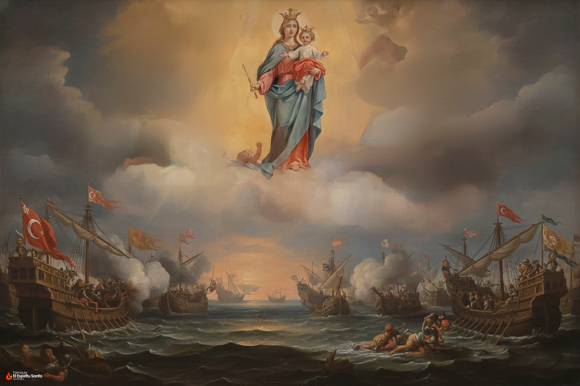 Al inicio, la guerra se miraba complicada para los cristianos, ya que estaban perdiendo porque el viento soplaba en contra de ellos, haciendo que sus barcos, que eran de vela, casi no avanzaran, mientras que los de los invasores sí agarraban más fuerza. Pero de repente, de una forma sorprendente, el viento cambió por completo de rumbo y comenzó a empujar con fuerza las velas de los barcos del ejército católico, lanzándolos contra sus enemigos. Los soldados atacaron con todo y, en poco tiempo, lograron derrotar totalmente a sus adversarios. Cabe mencionar que, mientras todo esto pasaba en la batalla, el Papa Pío V, junto a miles de fieles, recorría las calles de Roma rezando el Santo Rosario.