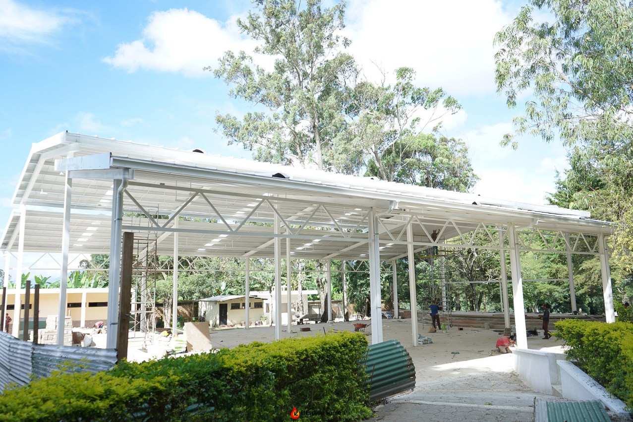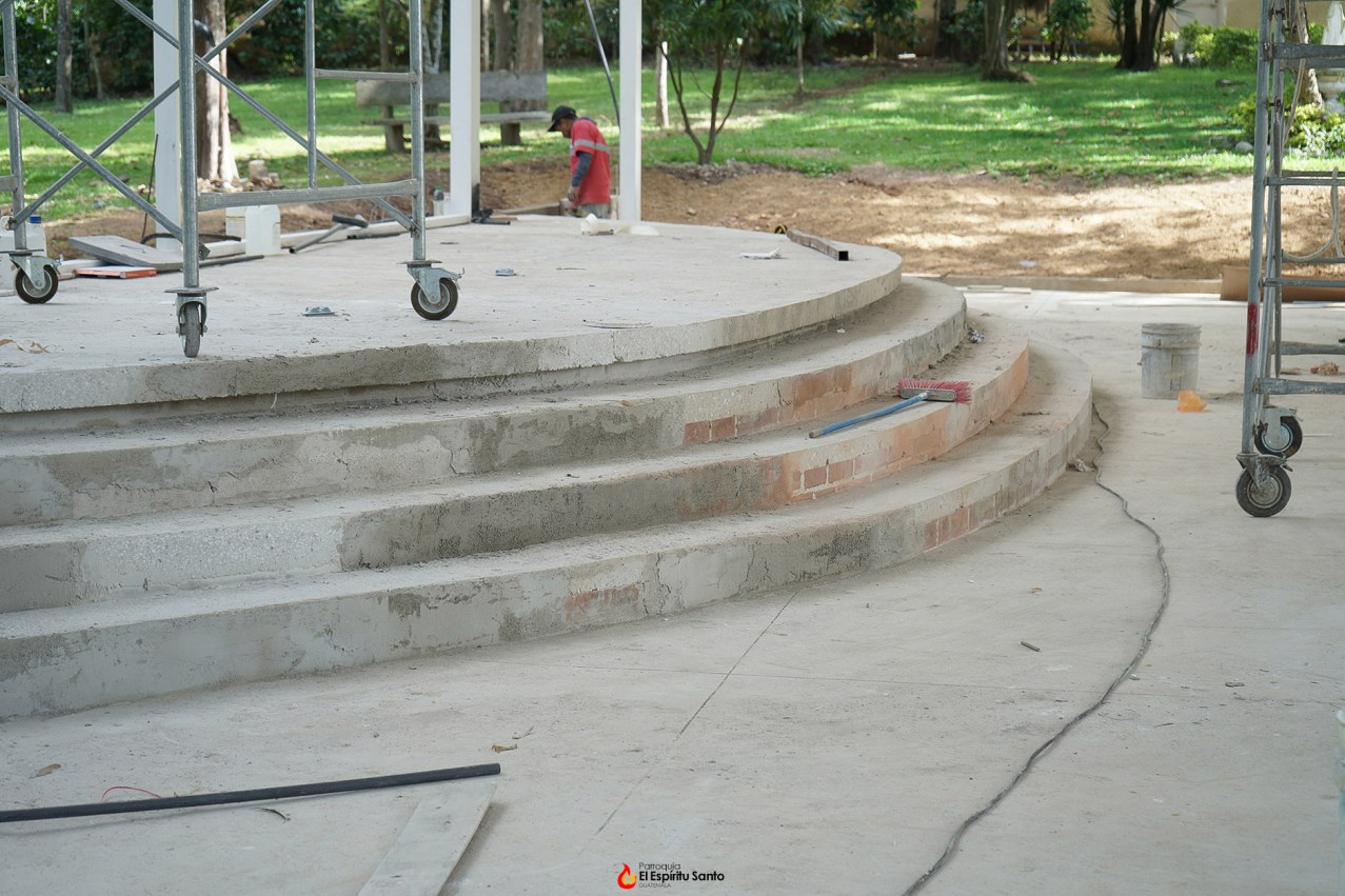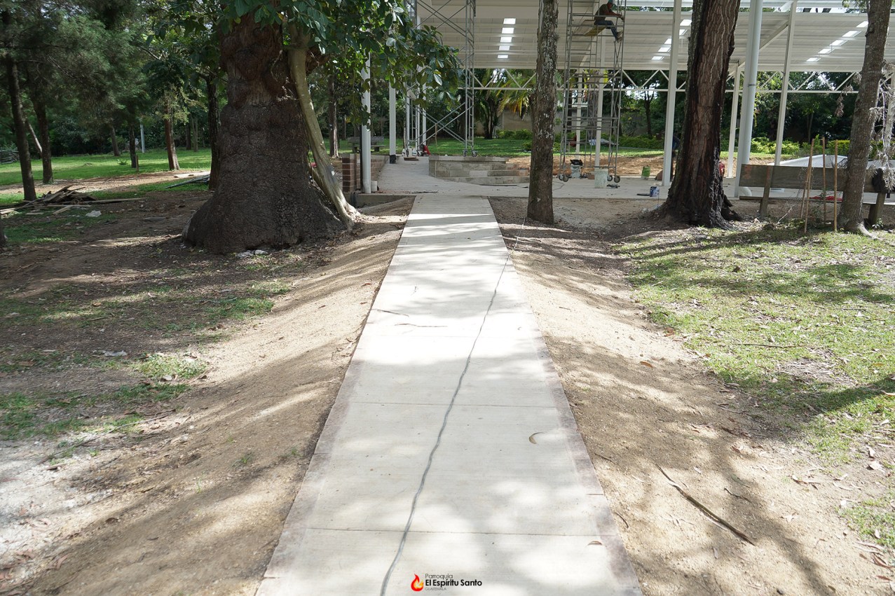 Hemos entrado en la fase final de la remodelación de nuestro Salón Campestre. Durante los últimos meses se ha realizado una remodelación completa del área techada del salón, siendo colocada una nueva estructura metálica de mayor tamaño para brindar más espacio a la feligresía que participa fervientemente en las misas dominicales.