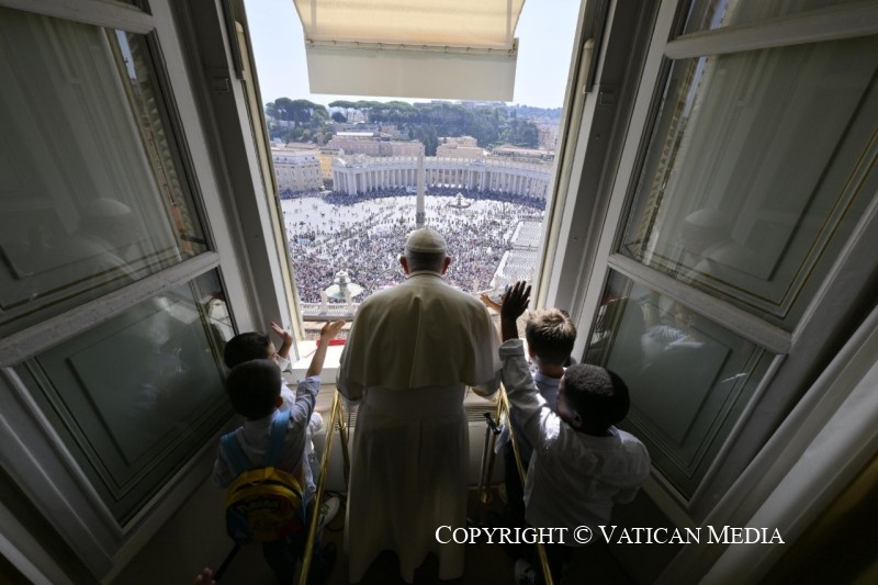 Hoy están aquí a mi lado, como pueden ver, cinco niños, que representan a los cinco continentes. Junto a ellos, quiero anunciarles que el 6 de noviembre por la tarde, en el Aula Pablo VI, tendré un encuentro con niños de todo el mundo. El evento, patrocinado por el Dicasterio para la Cultura y la Educación, tendrá como tema «Aprendamos de los niños y de las niñas». Es un encuentro para manifestar el sueño de todos: volver a tener sentimientos puros como los niños, porque el Reino de Dios pertenece a los que son como niños. Los niños nos enseñan la claridad de las relaciones y la aceptación espontánea del extraño y el respeto de toda la creación. Queridos niños, los espero a todos para aprender yo también de ustedes.
