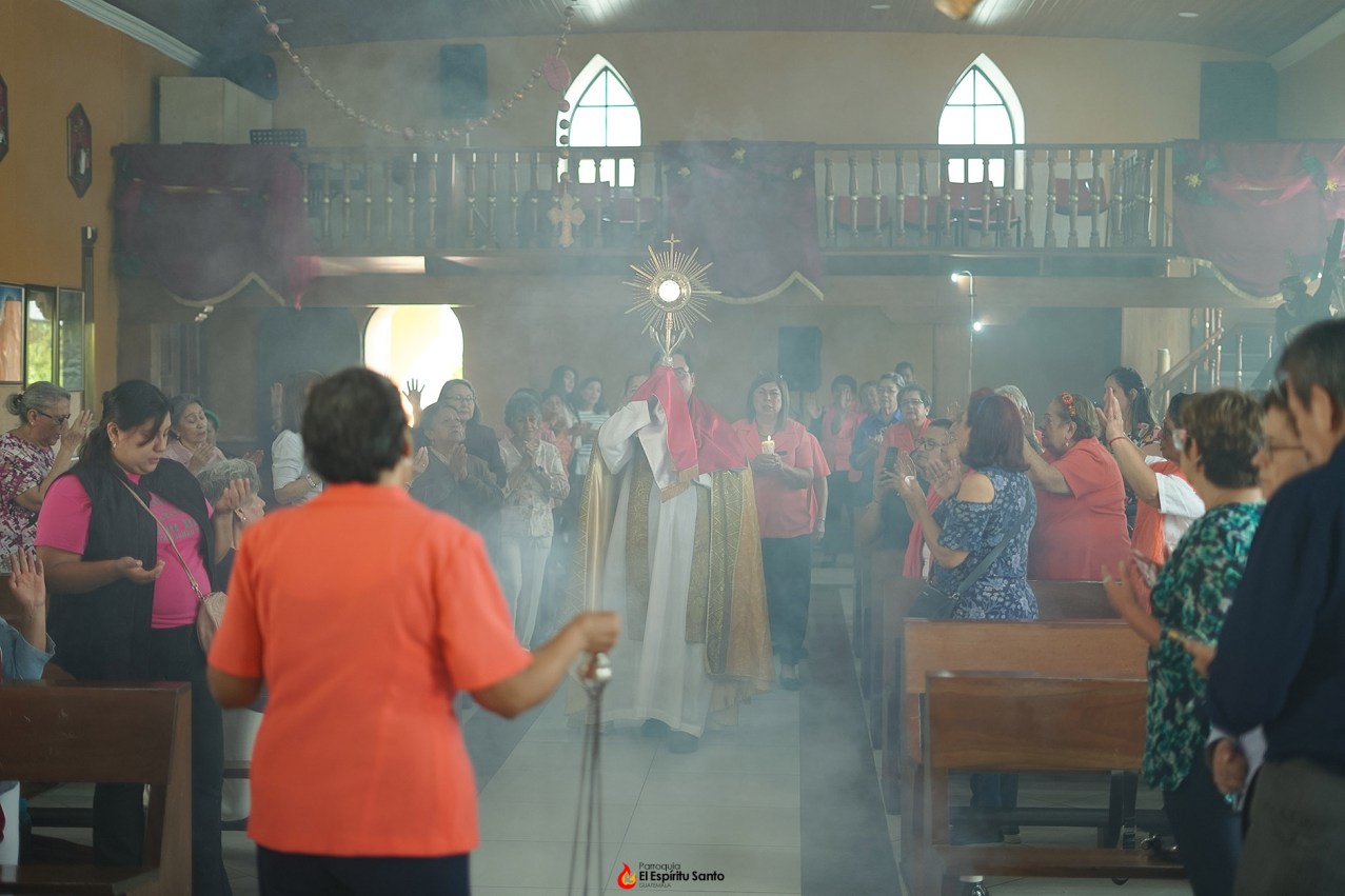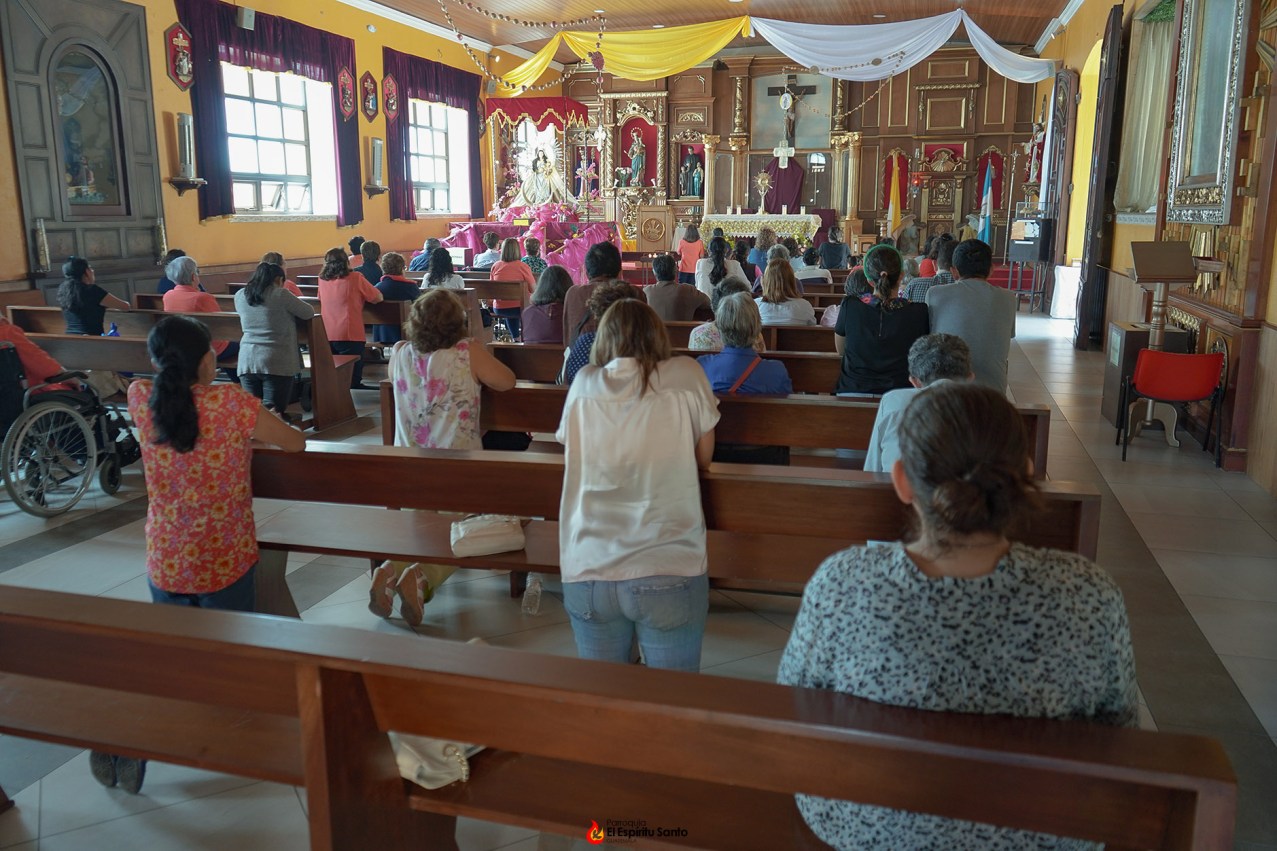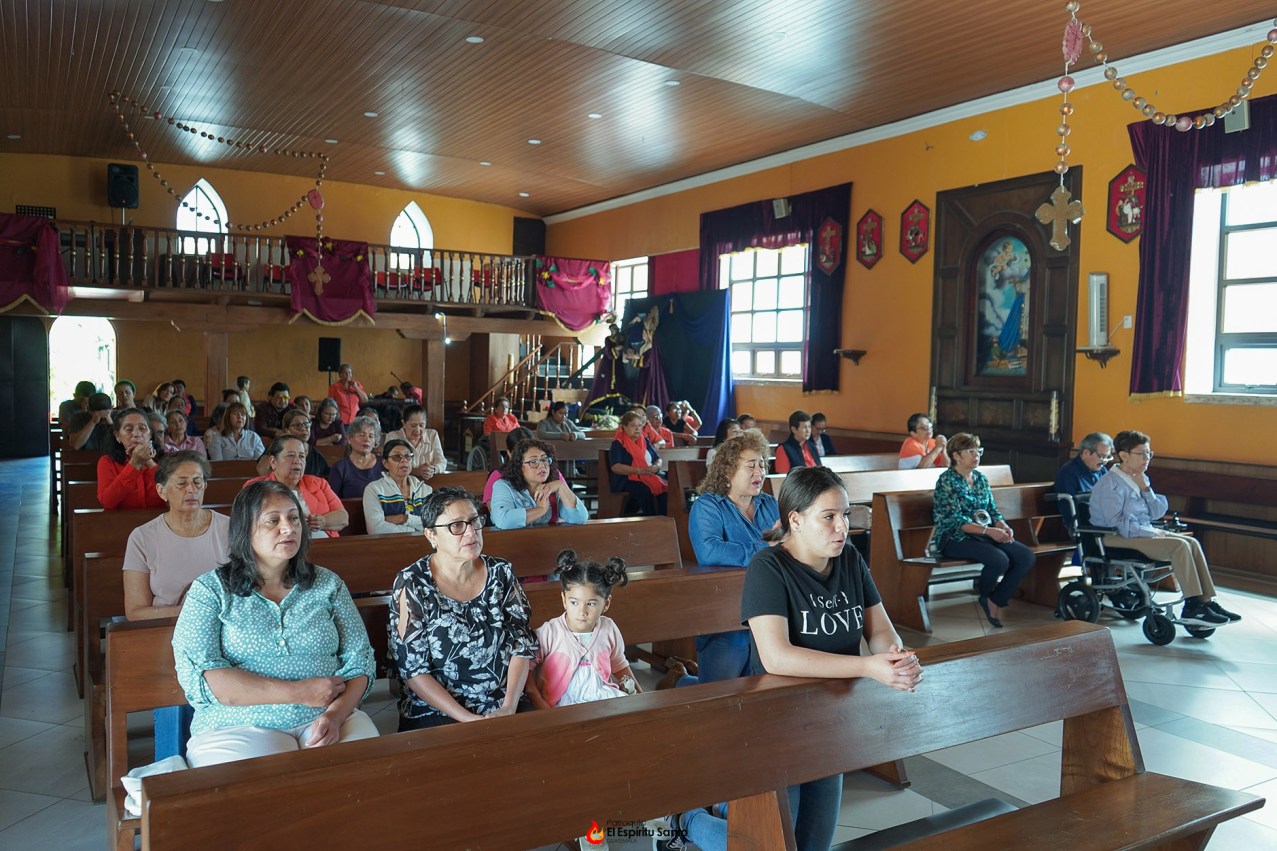 Iniciando a las 9:30 a.m. las integrantes de la comunidad rezaron el Santo Rosario, pidiendo por la paz en Guatemala, además de presentar al Señor todas sus peticiones personales, así como también pidieron por las almas de las integrantes que se han adelantado a la casa del Señor. La mañana contó con la alabanza a cargo de Fredy Gálvez.