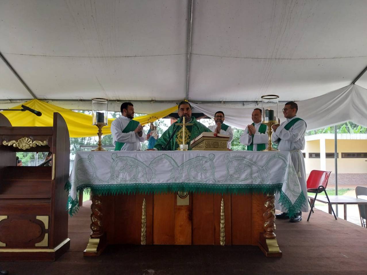 La misa de 11:00 a.m., presidida por el Padre Julio Navarro, SDB, inspector de Centroamérica, contó con la presencia de tres diáconos y un sacerdote, algunos procedentes de Colombia.