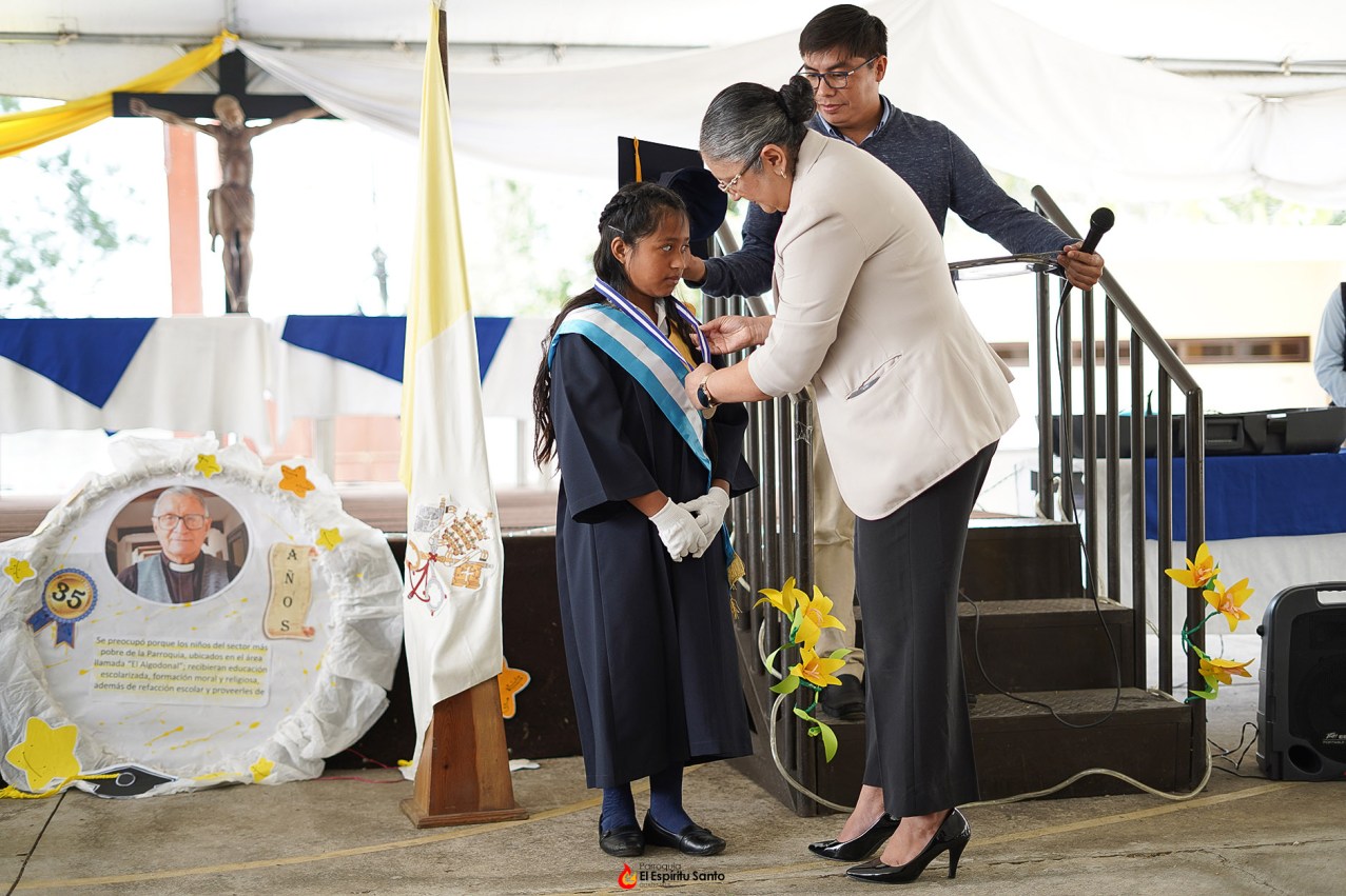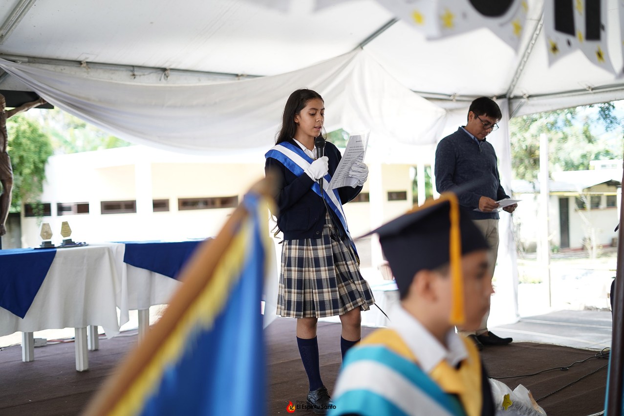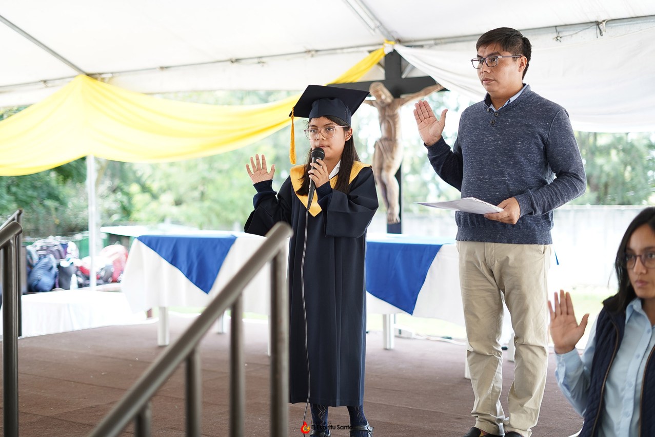 Al finalizar la Eucaristía, los jóvenes se trasladaron al Salón Campestre en donde, además de cantar el himno nacional y recitar la jura a la bandera, hicieron entrega de los respectivos diplomas a cada uno de los alumnos, además de dar la medalla “Gariglio” a la alumna que más se destacó no únicamente en sus calificaciones, sino también en vivir los principios salesianos en su vida.