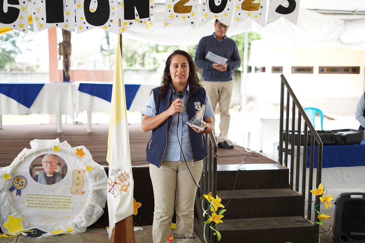 Dentro de la actividad, el Centro Escolar otorgó un reconocimiento a la Inspectoría Divino Salvador, por el constante apoyo que han brindado durante estos 35 años que tiene la institución educativa de existir. Dicho reconocimiento fue gratamente recibido por los padres Gabriel Romero y Rolando Echeverría.