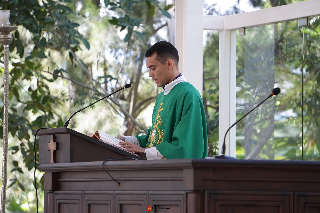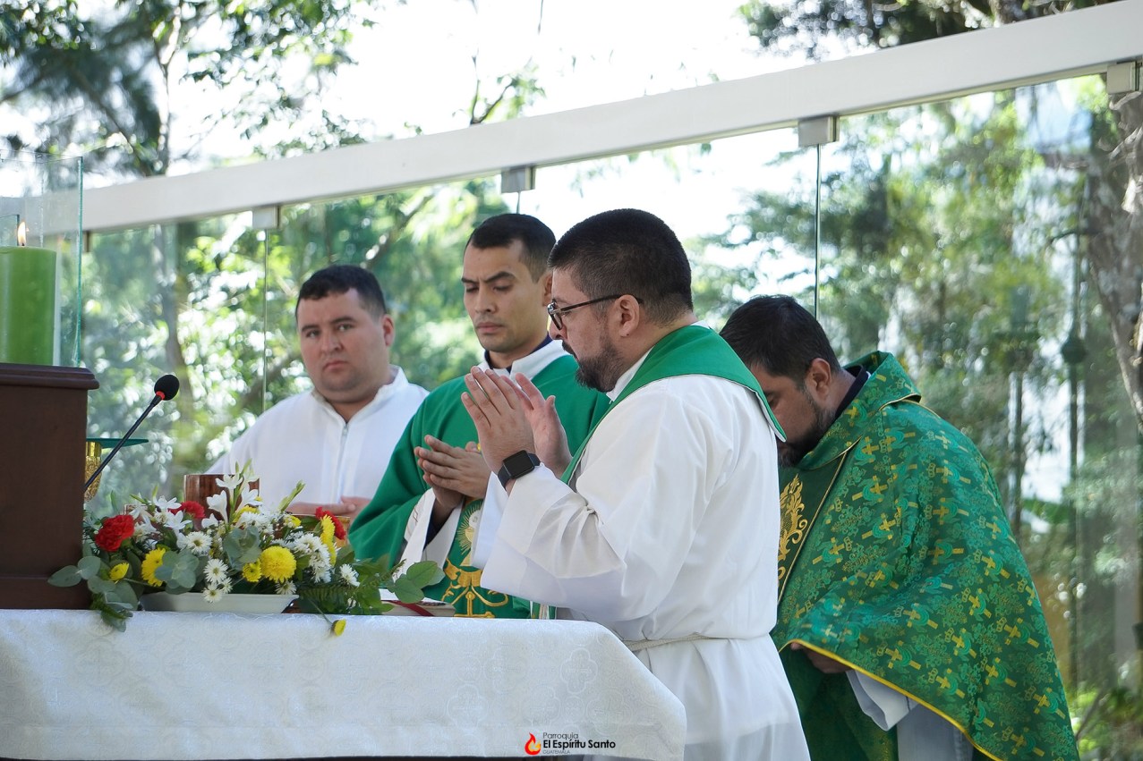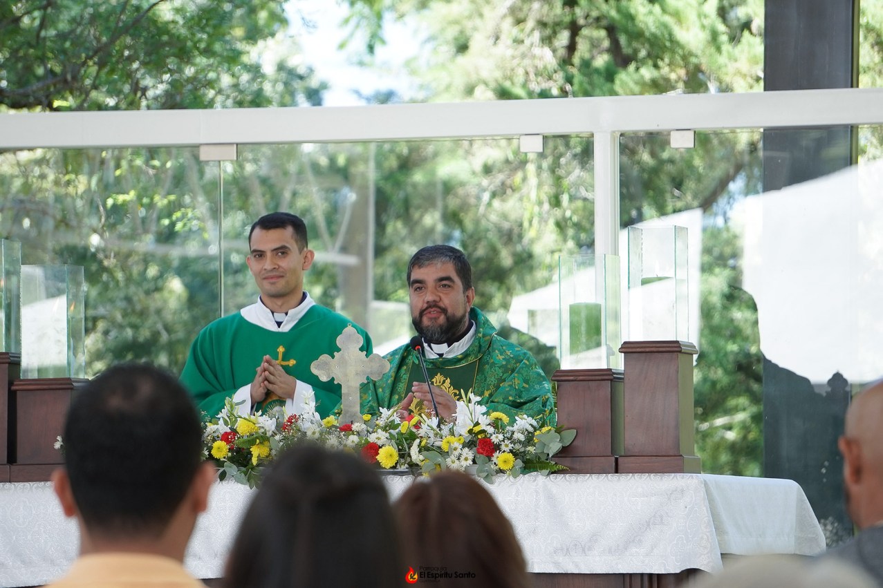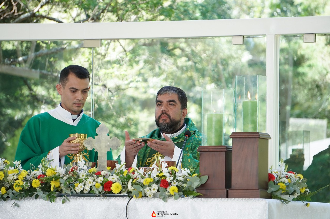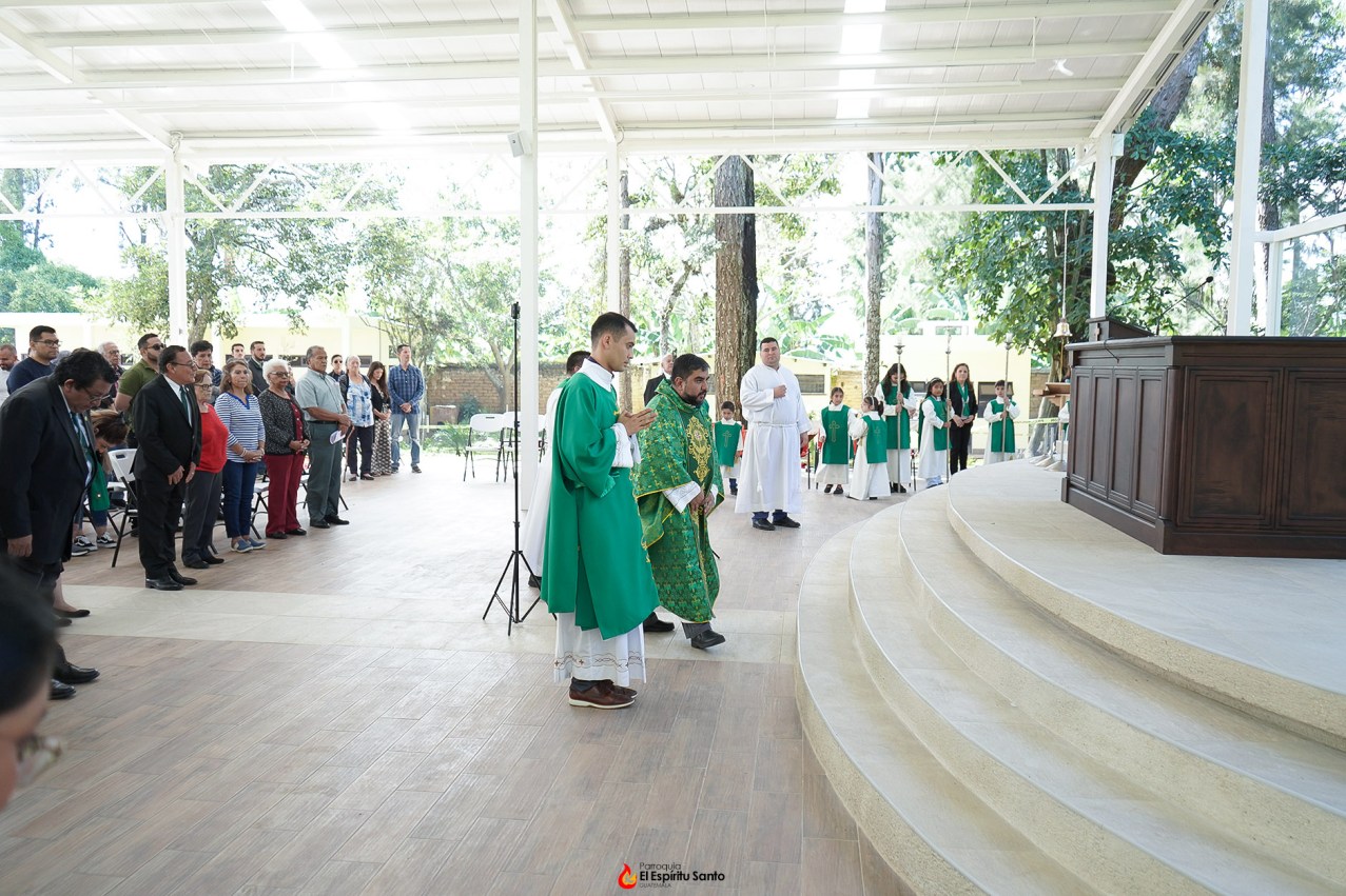 El padre Julio Navarro, SDB, Inspector de Centroamérica, llevó a cabo la celebración de la Santa Misa, acompañado por el padre Gabriel Romero, SDB, el diácono Giovanni Argueta y el estudiante de teología Osiris Rivera. Luego de la Oración de los Fieles, el padre Julio ha llevado a cabo la bendición de la nueva edificación, así como el altar que, a partir de ese día, será utilizado en todas las Eucaristías que se celebren al aire libre.