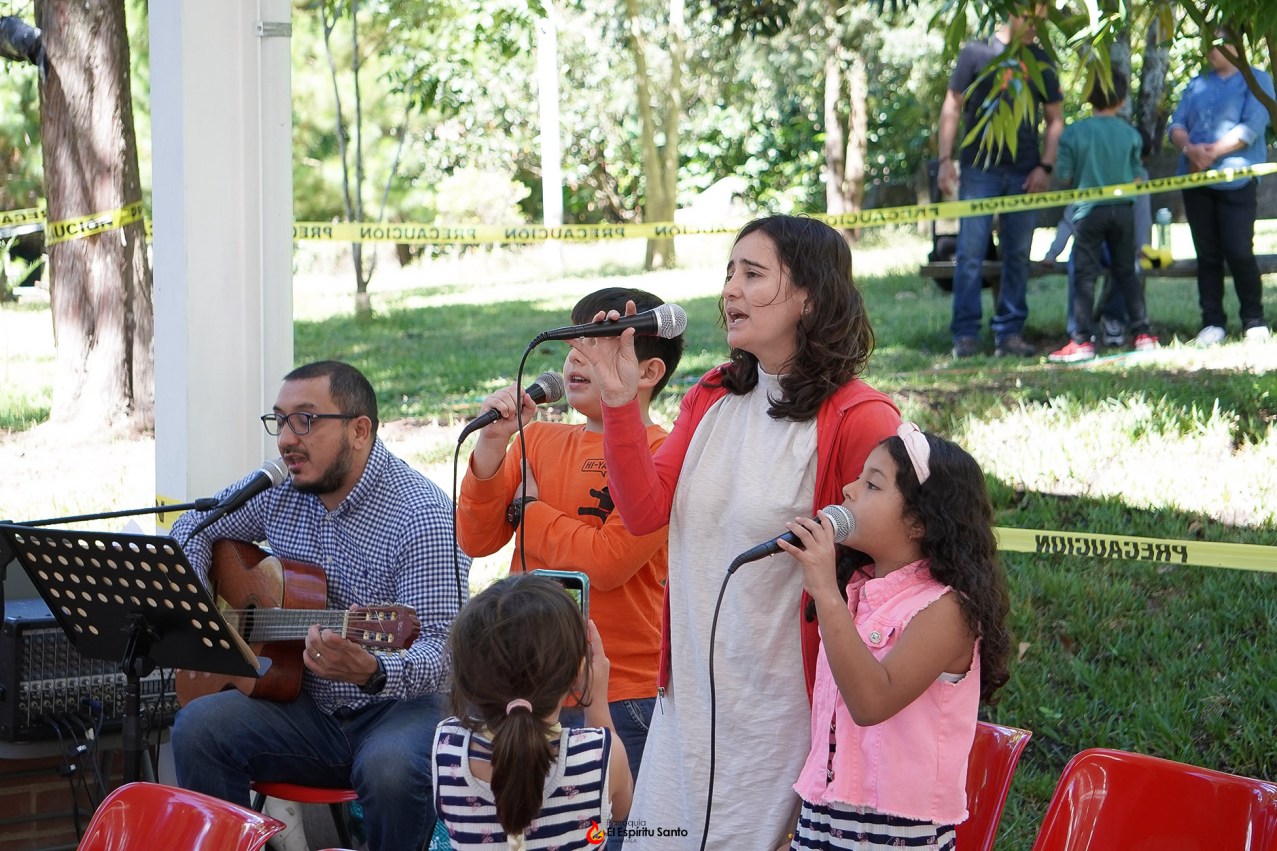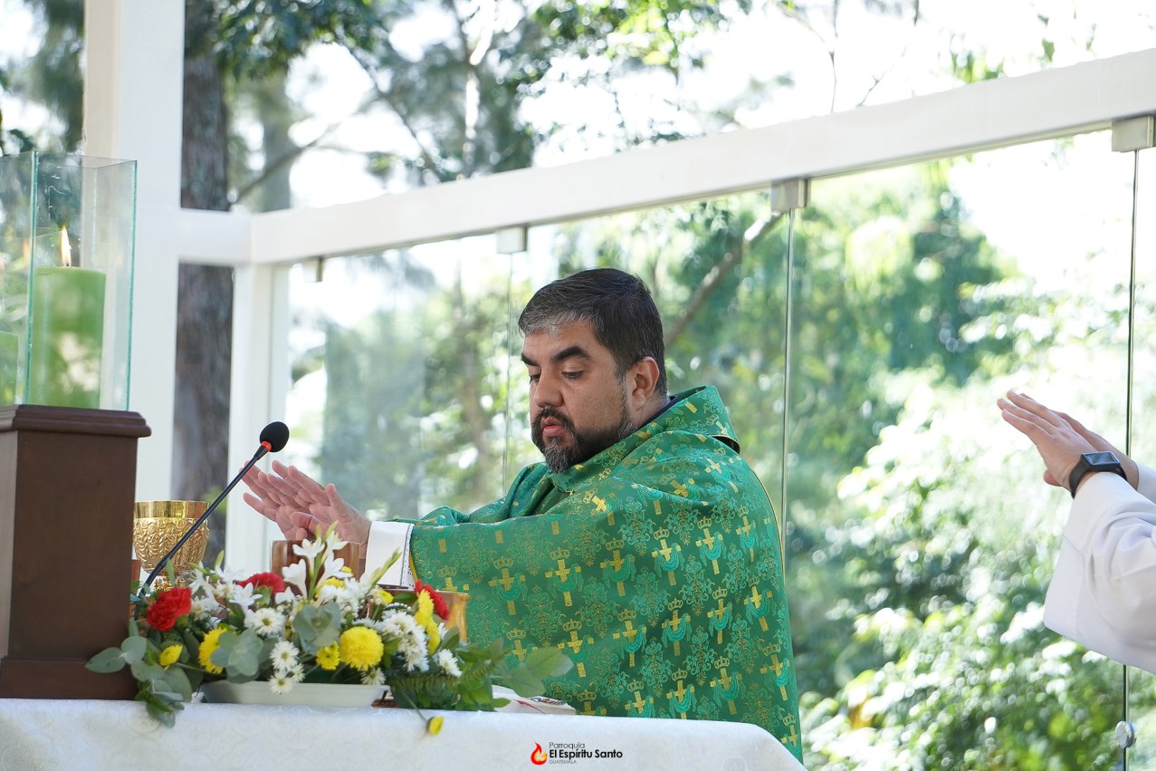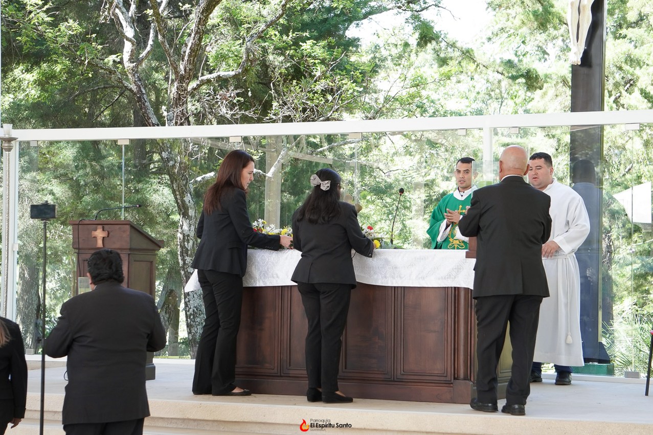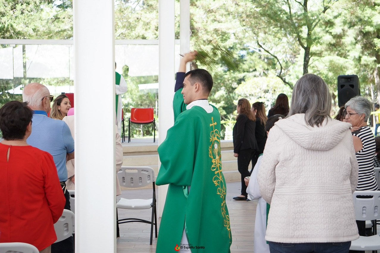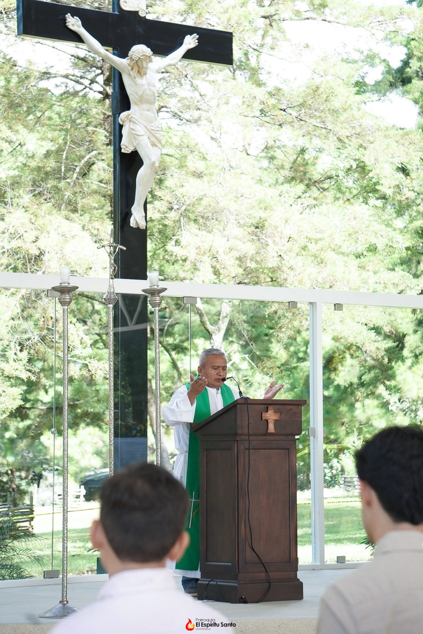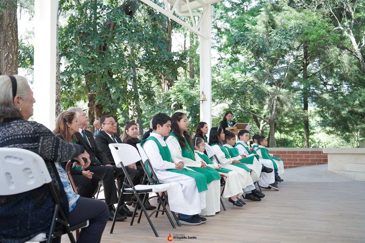 El padre Julio Navarro, SDB, Inspector de Centroamérica, llevó a cabo la celebración de la Santa Misa, acompañado por el padre Gabriel Romero, SDB, el diácono Giovanni Argueta y el estudiante de teología Osiris Rivera. Luego de la Oración de los Fieles, el padre Julio ha llevado a cabo la bendición de la nueva edificación, así como el altar que, a partir de ese día, será utilizado en todas las Eucaristías que se celebren al aire libre.