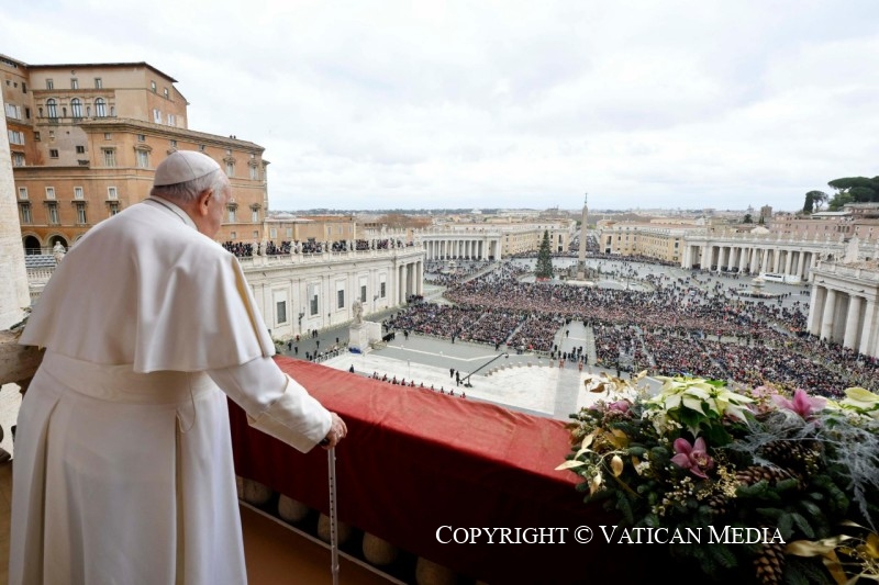 La mirada y el corazón de los cristianos de todo el mundo se dirigen hacia Belén. Allí, donde en estos días reinan dolor y silencio, resonó el anuncio esperado durante siglos: «Les ha nacido un Salvador, que es el Mesías, el Señor» (Lc 2,11). Estas fueron las palabras del ángel en el cielo de Belén y hoy se dirigen también a nosotros. Nos llena de confianza y esperanza saber que el Señor nació por nosotros; que la Palabra eterna del Padre, el Dios infinito, puso su morada entre nosotros; que se hizo carne, vino «y habitó entre nosotros» (Jn 1,14). ¡Esta es la noticia que cambia el curso de la historia!