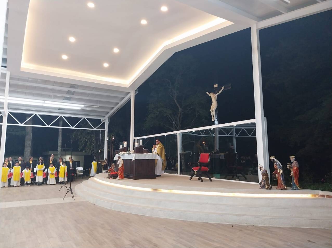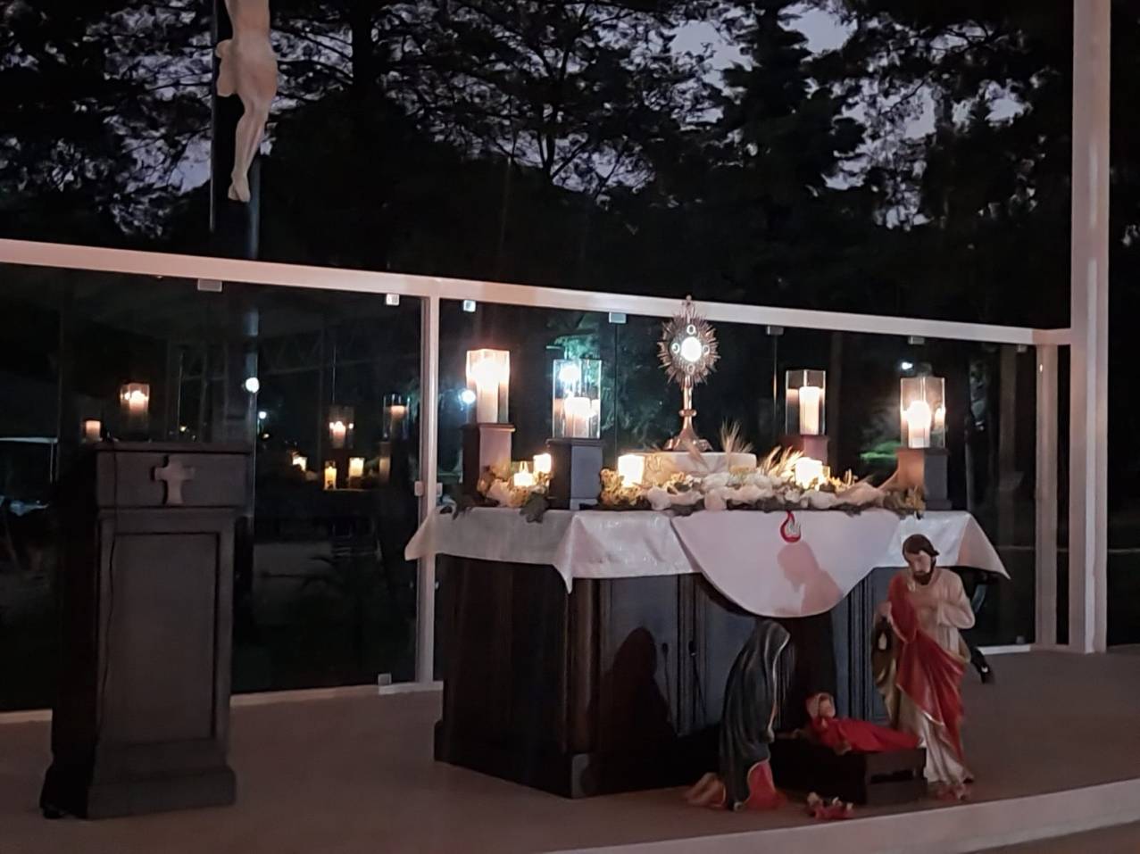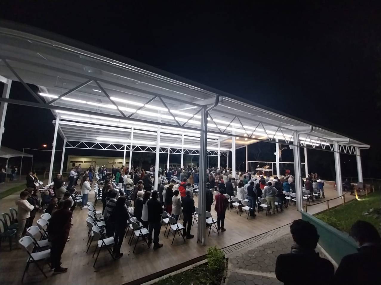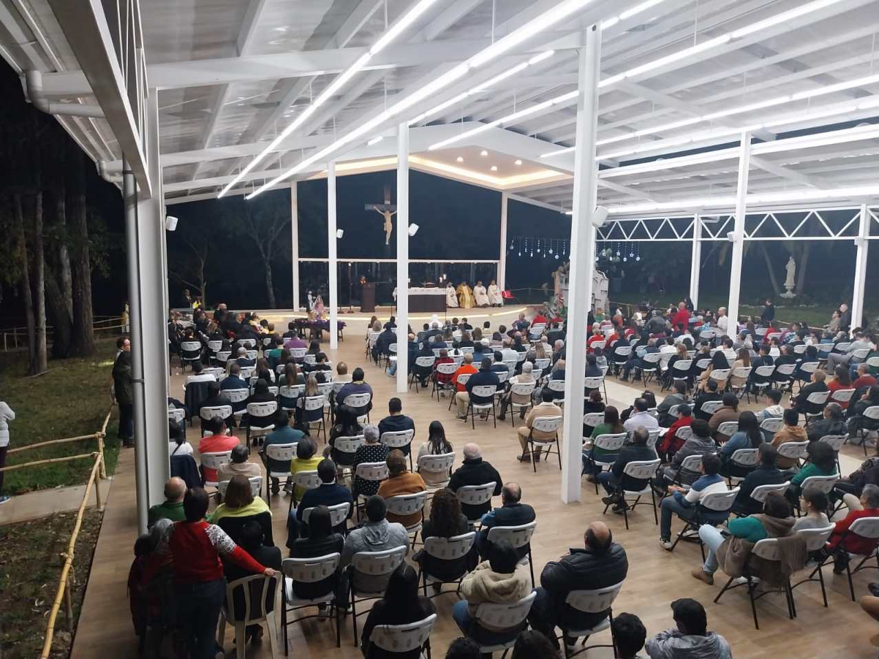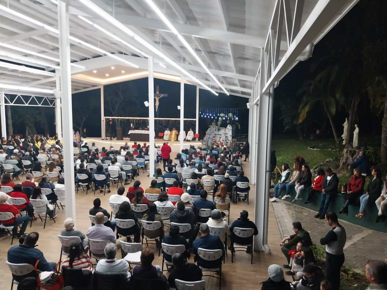 El Santísimo Sacramento fue expuesto en el Salón Campestre, al que acudieron cientos de personas a presentar sus oraciones al Señor. La Adoración fue acompañada con rezos y cantos que crearon la atmósfera ideal para la oración y meditación.