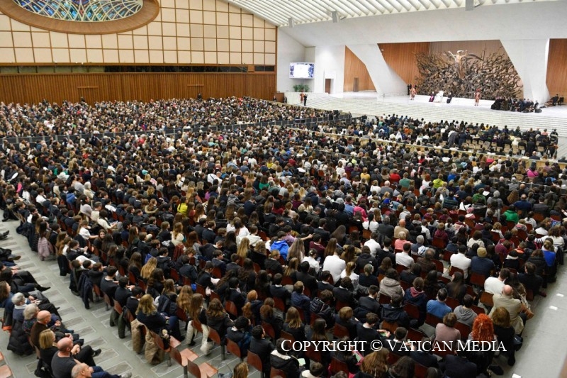 Ganar la batalla contra la lujuria, contra la “cosificación” del otro, puede ser un esfuerzo que dura toda la vida. Pero el premio de esta batalla es el más importante de todos, porque se trata de preservar esa belleza que Dios escribió en su creación cuando imaginó el amor entre el hombre y la mujer, que no es para usarse el uno al otro, sino para amarse. Esa belleza que nos hace creer que construir juntos una historia es mejor que lanzarse a la aventura – ¡hay tantos don Juanes! -, cultivar la ternura es mejor que doblegarse ante el demonio de la posesión – el verdadero amor no posee, se dona -, servir es mejor que conquistar. Porque si no hay amor, la vida es triste, es una triste soledad. Gracias.