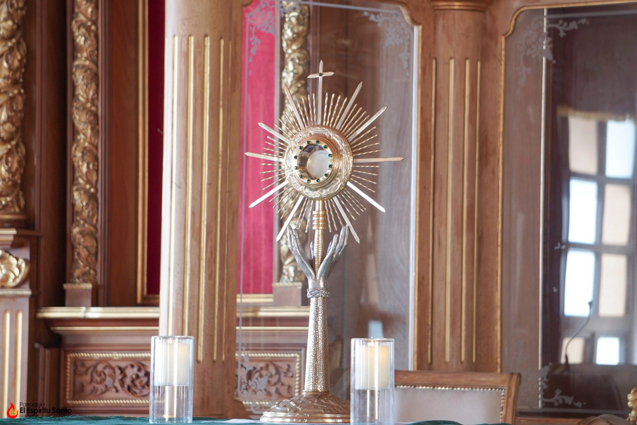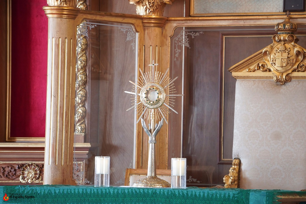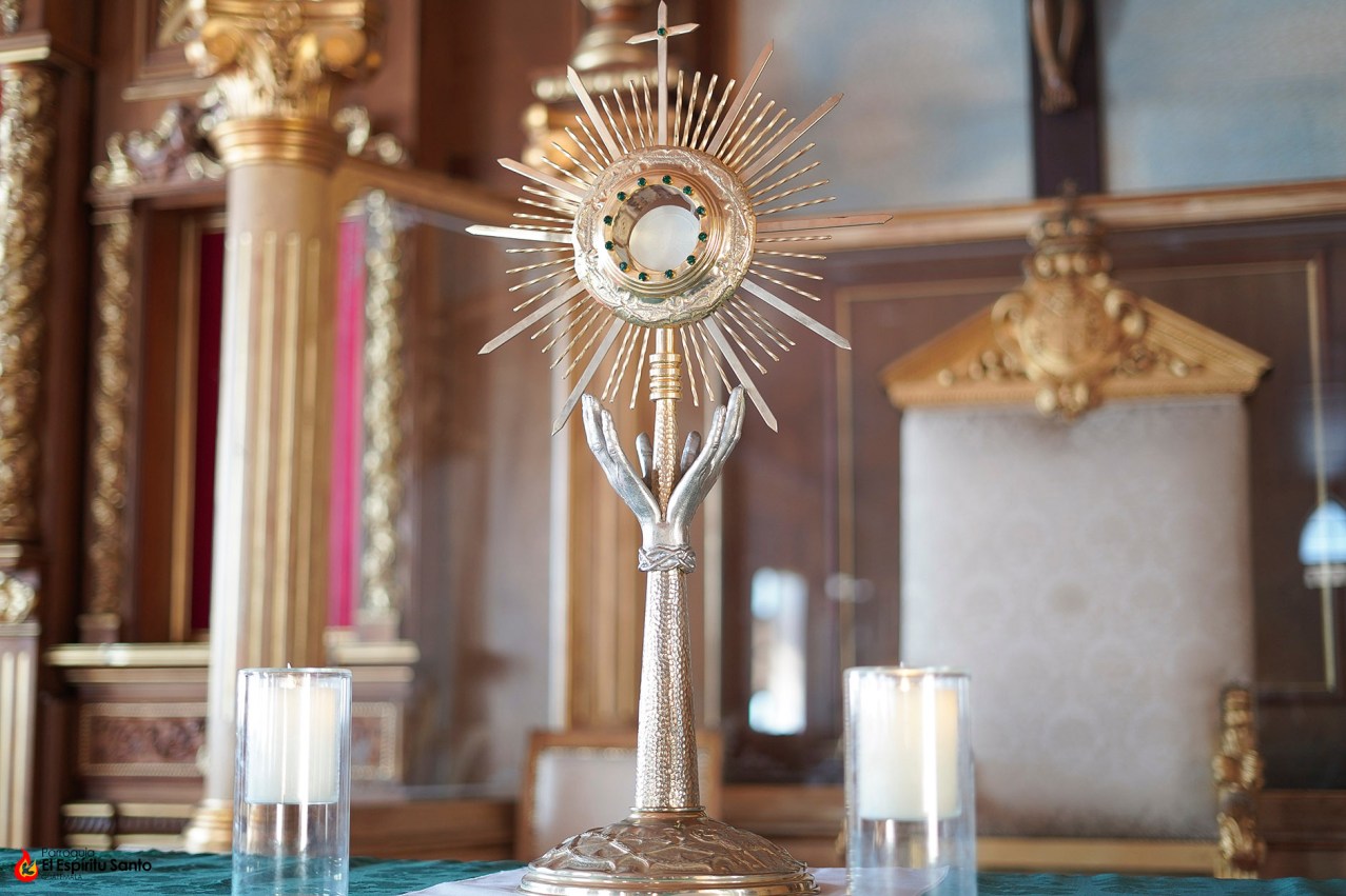 Con una oración de acción de gracias a Dios por todas las bendiciones recibidas, además de pedir su intercesión por las necesidades de los presentes y sus familias, el padre Luis ha colocado a Jesús Sacramentado sobre el altar quedando expuesto a lo largo de todo el día.