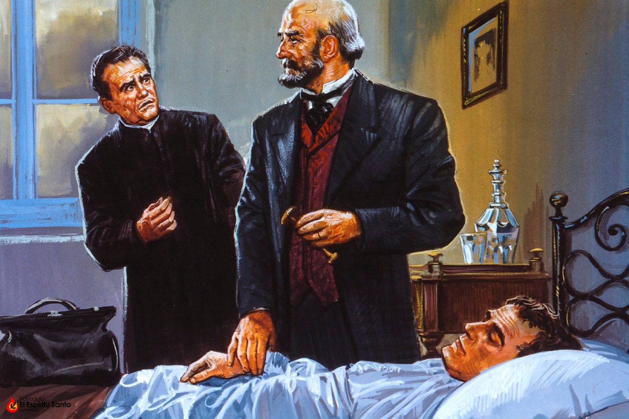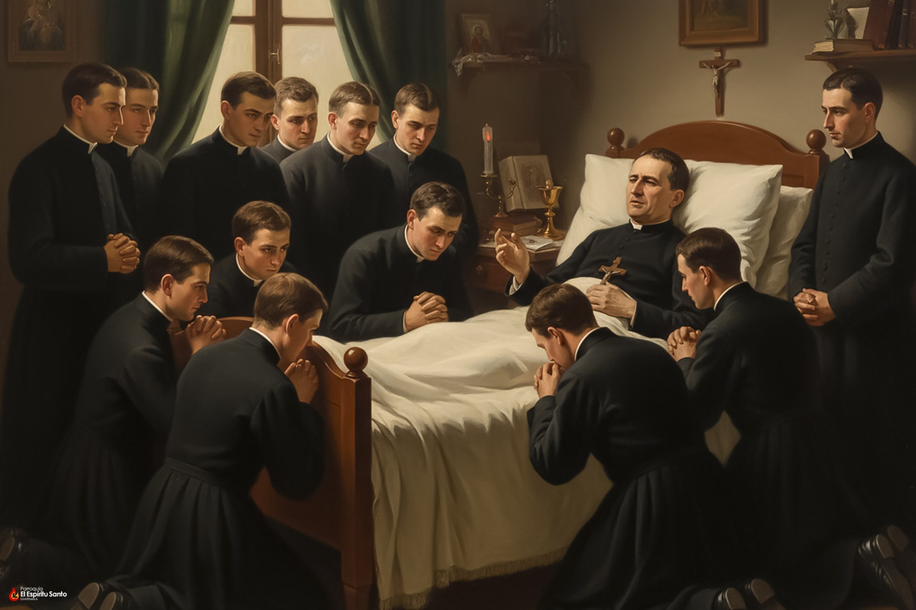 Varios de sus queridos Salesianos están reunidos en torno a Don Bosco quien comienza a agonizar; un sentimiento de profunda angustia invade a todos los presentes y a los habitantes del Oratorio.