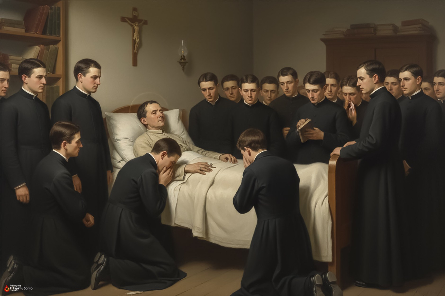 Era un lunes, 30 de enero de 1888, Don Bosco ha entrado en agonía. Los médicos que lo examinan coinciden en que le quedan pocas horas de vida; la parálisis que comenzó en las piernas avanza por el cuerpo de Don Bosco con cada hora que transcurre.
