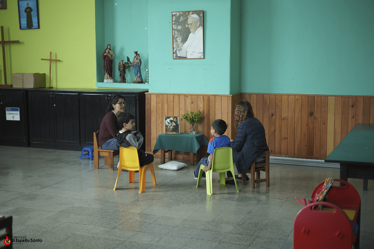Dicha reunión se realizó durante una hora, iniciando a las 9:00 a.m. a la que, en esta primera oportunidad, asistieron 4 niños quienes con juegos, cantos y dibujos, comenzaron a aprender acerca de Dios y de nuestra Fe católica.