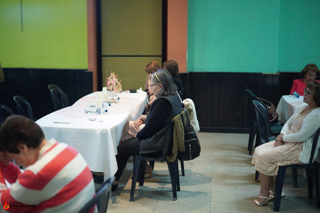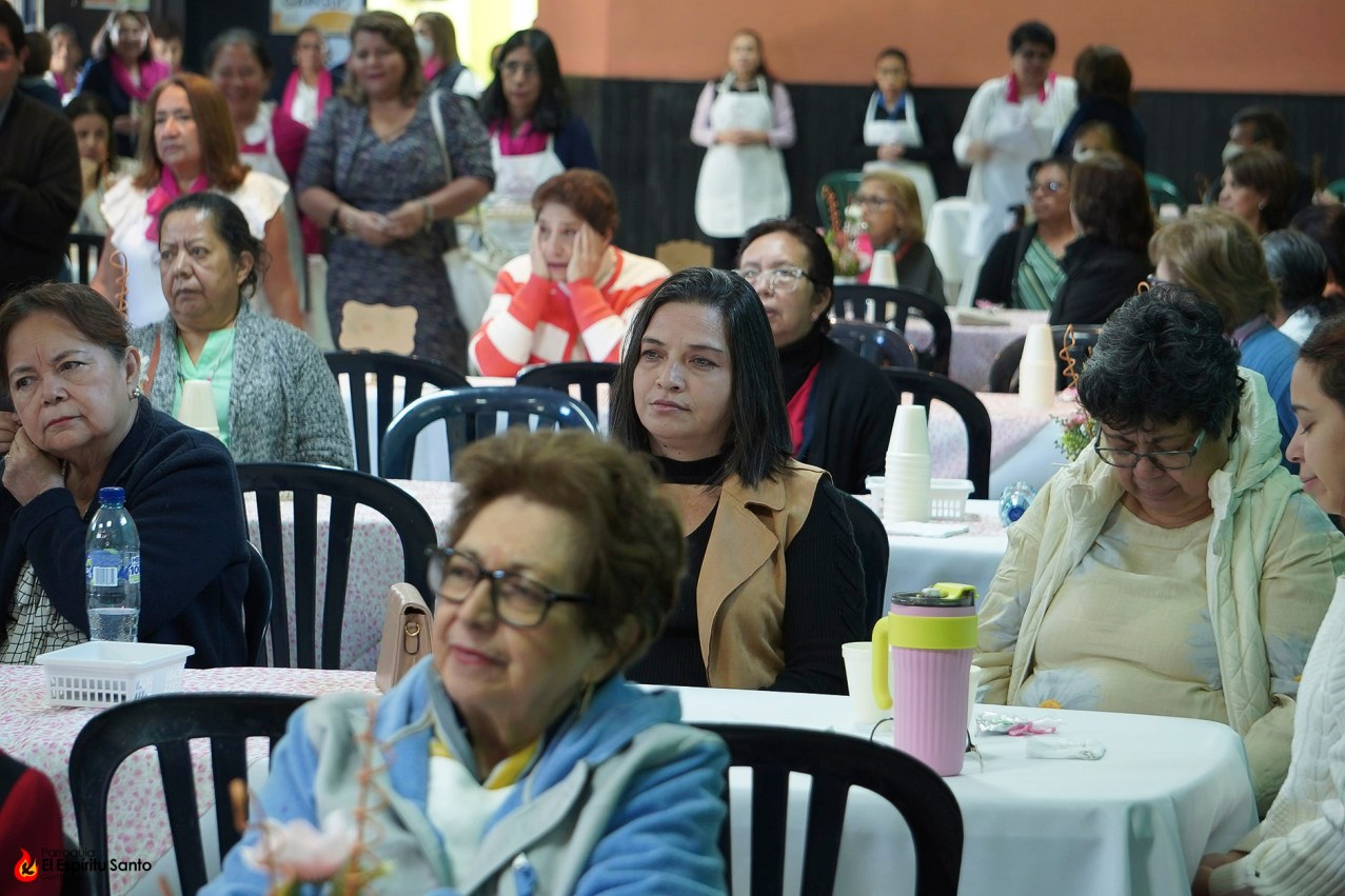 Iniciando alrededor de las 8:30 a.m., el desayunó se llevó a cabo en el Salón Don Bosco, contando con la asistencia de varias decenas de personas, en su mayoría mujeres, quienes compartieron un momento agradable animado por la alabanza de Alejandro Solís.