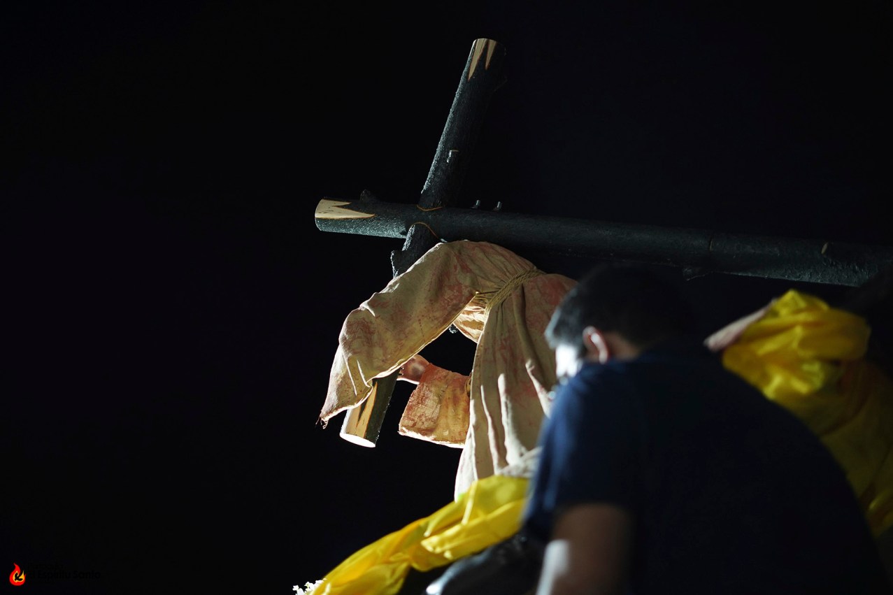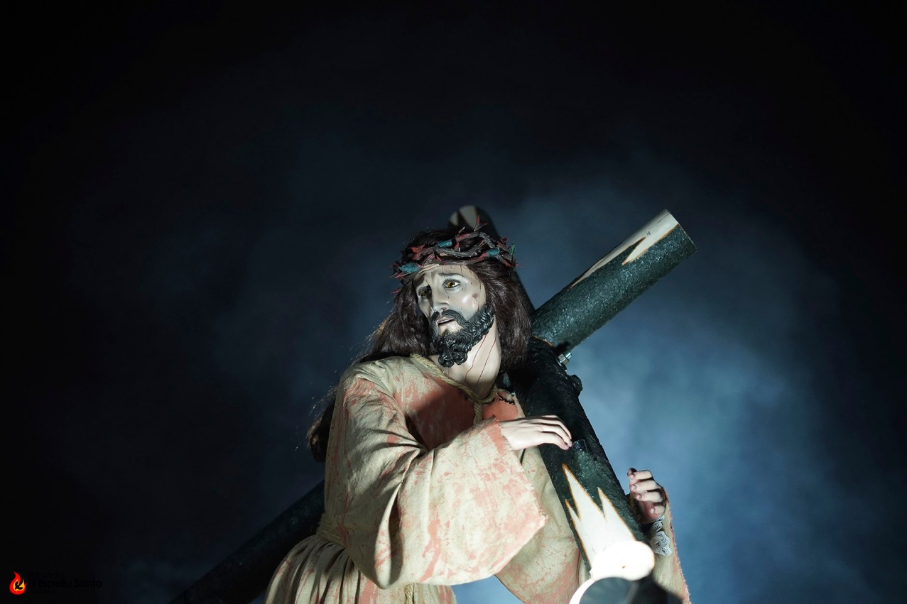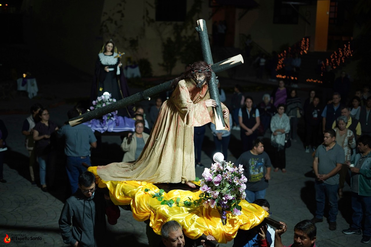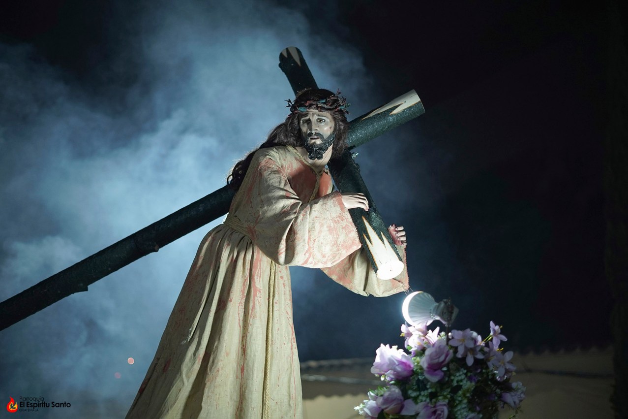 Al finalizar la Misa de 7:00 p.m. dio inicio la procesión con las veneradas imágenes por el parqueo interno, visitando cada uno de los catorce altares que los grupos parroquiales han realizado y en el que cada uno representa una estación del Vía Crucis.