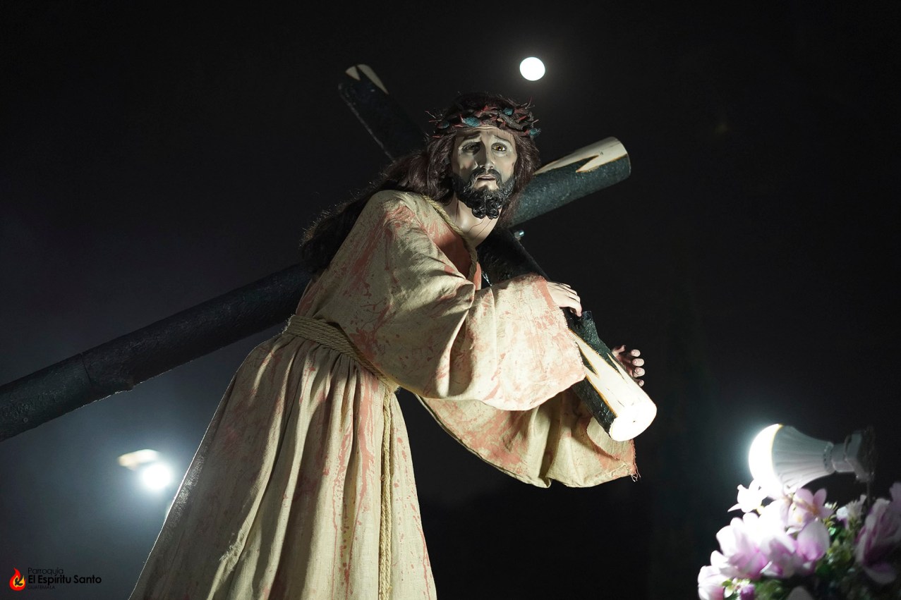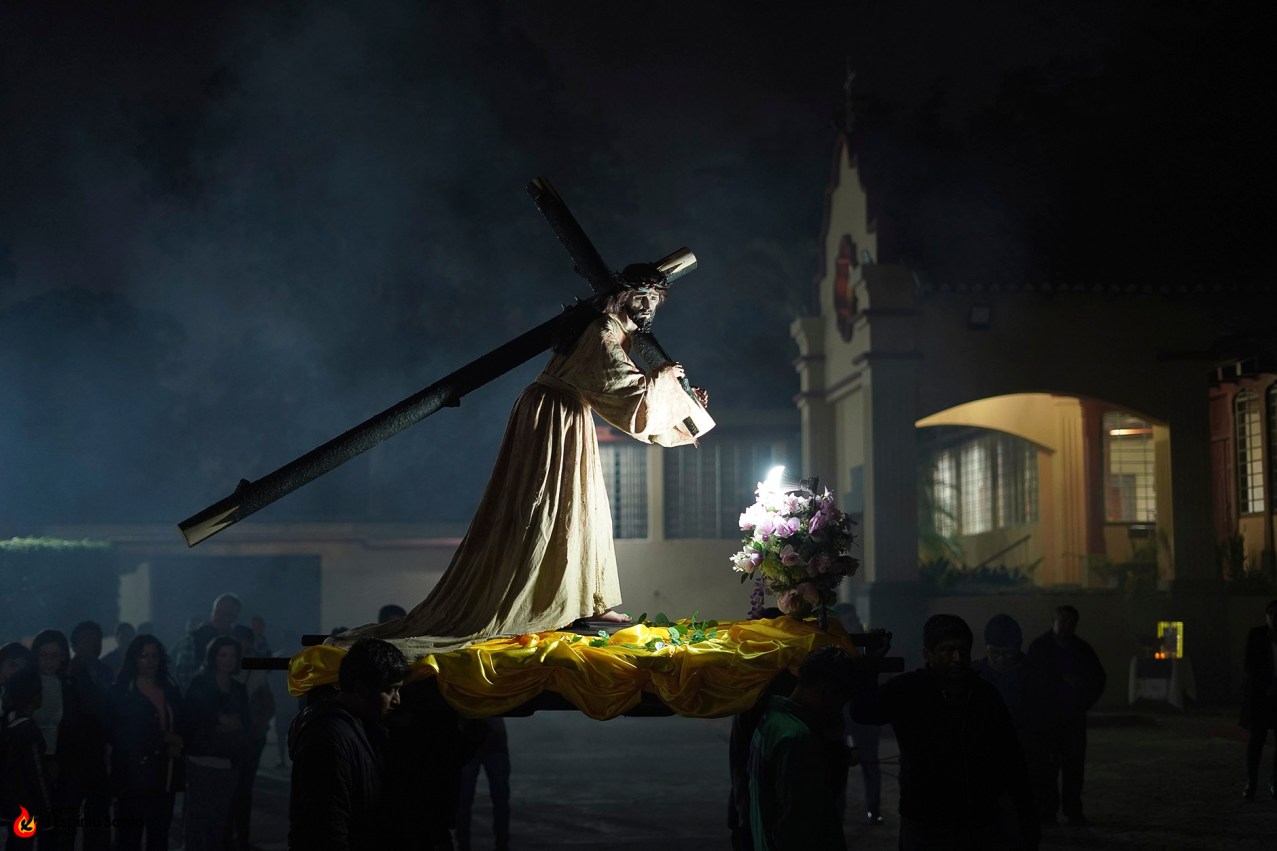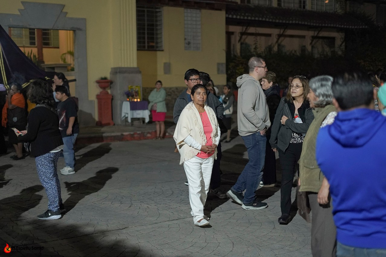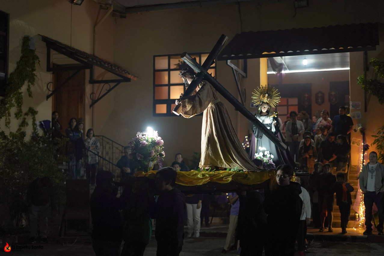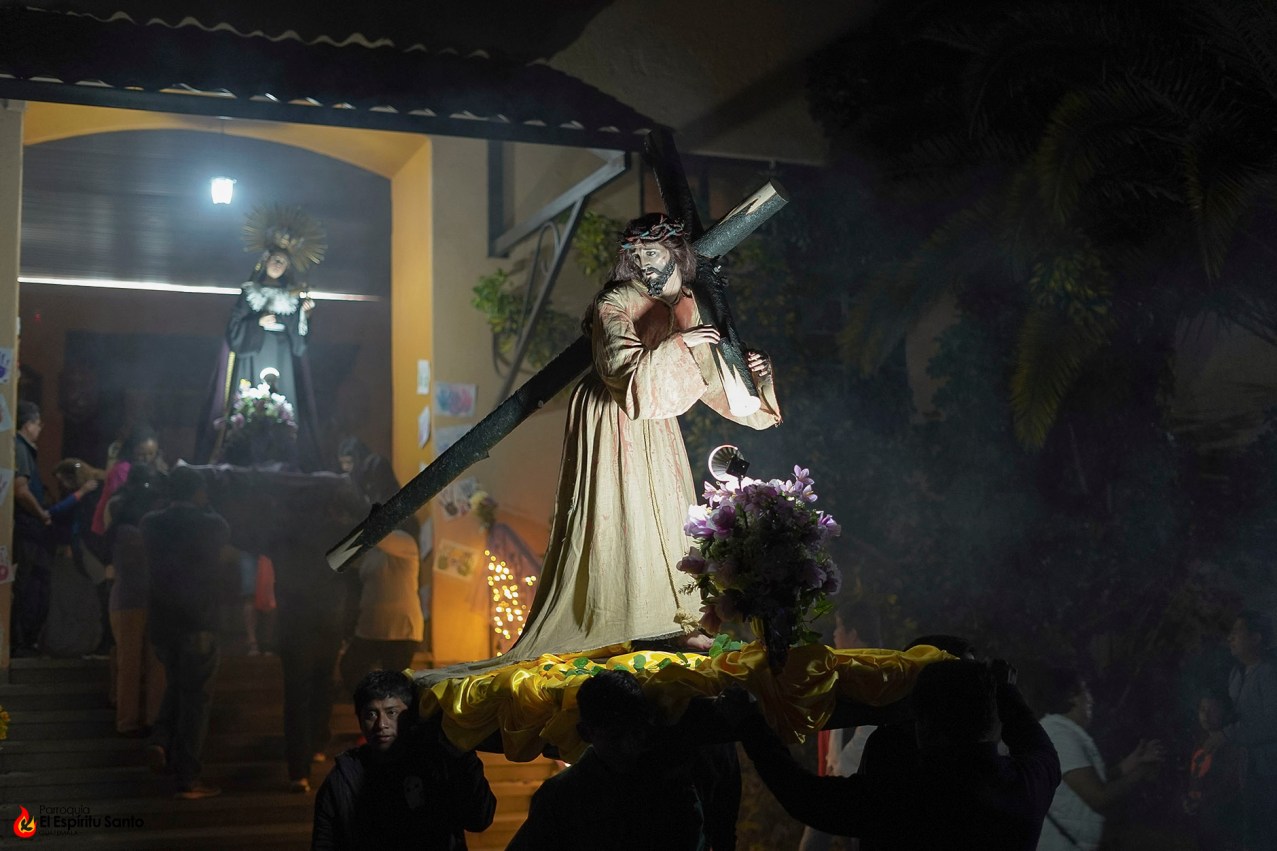 Nuestras imágenes fueron llevadas en hombros por sus devotos, a través del parqueo interno, recorriendo cada una de las estaciones del Vía Crucis, acompañadas por marchas fúnebres y cantos de la época.