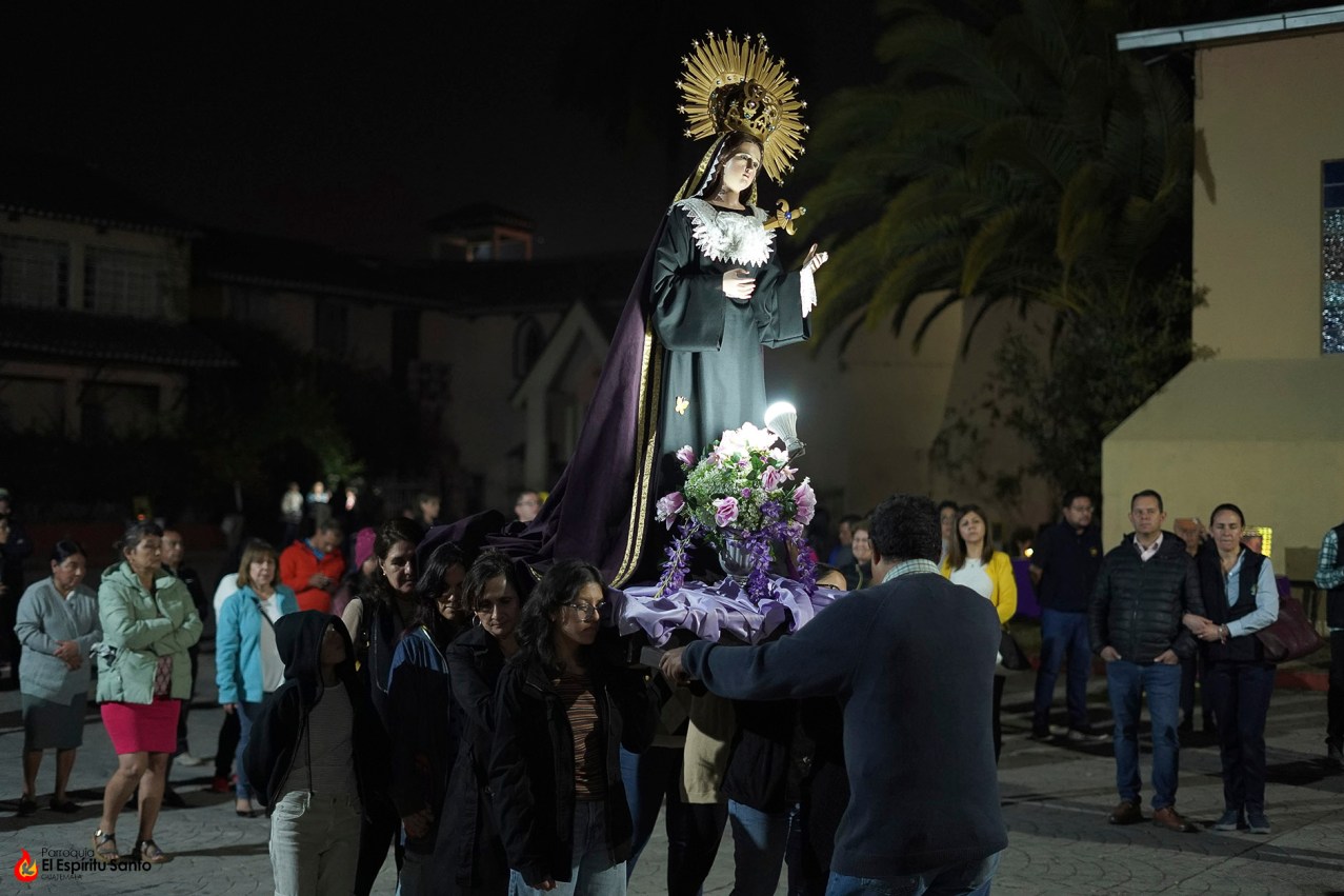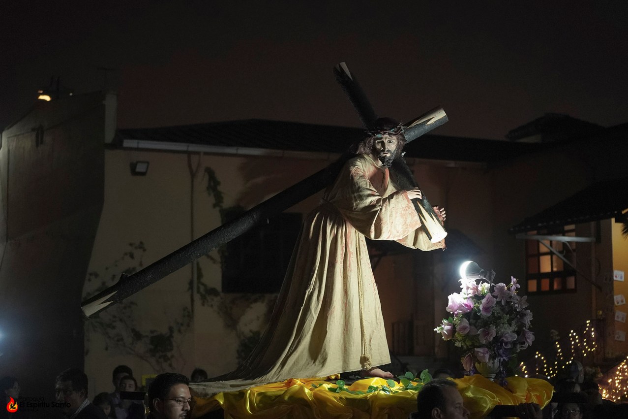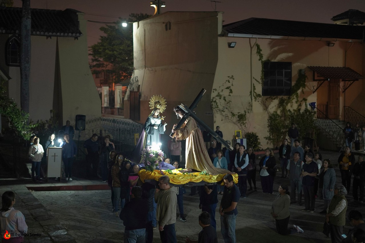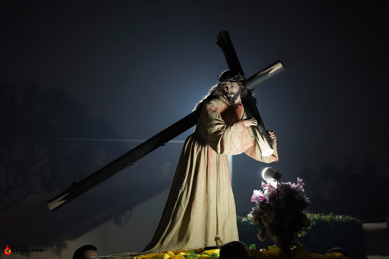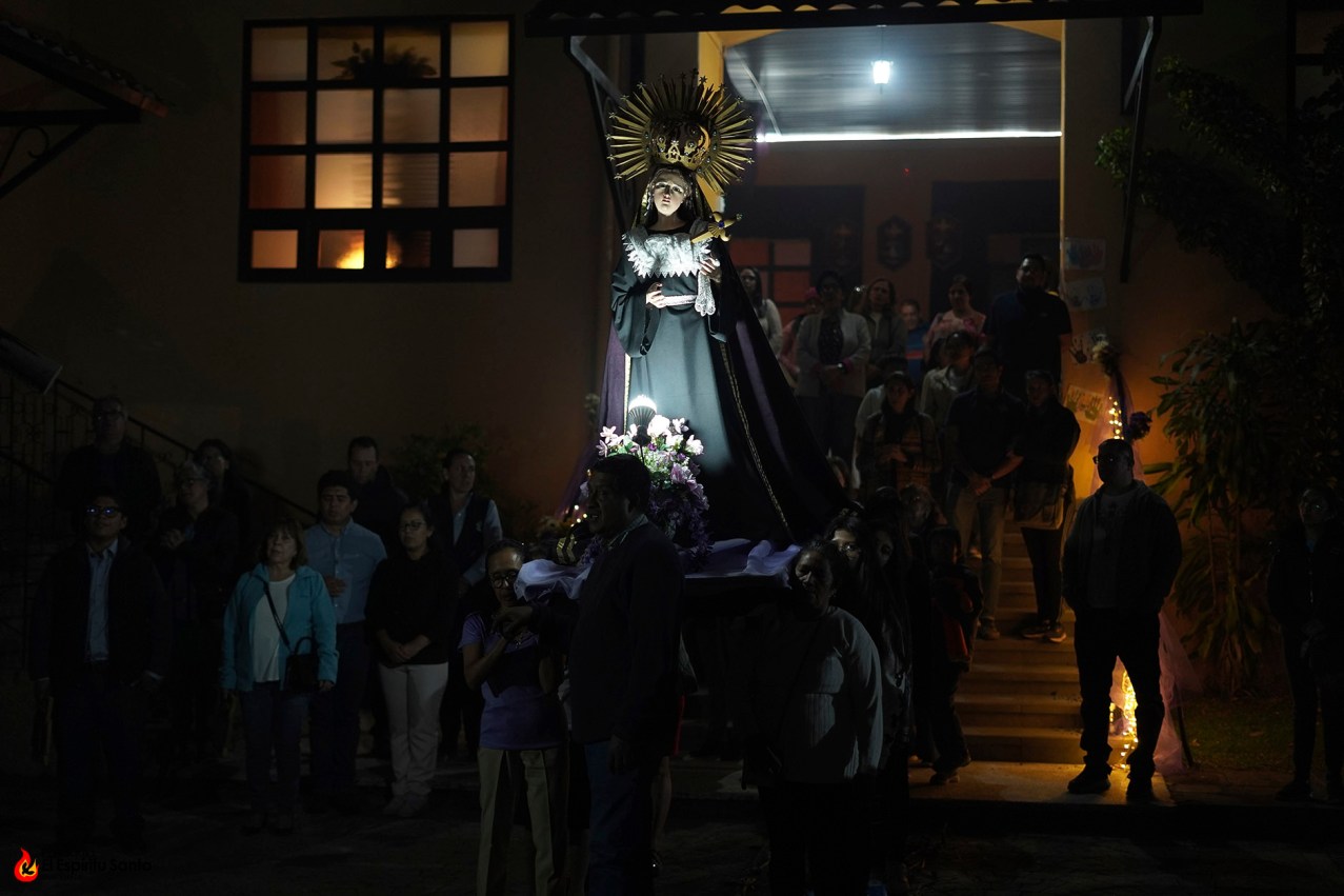 Nuestras imágenes fueron llevadas en hombros por sus devotos, a través del parqueo interno, recorriendo cada una de las estaciones del Vía Crucis, acompañadas por marchas fúnebres y cantos de la época.