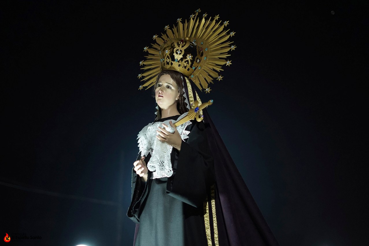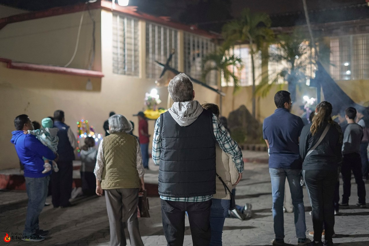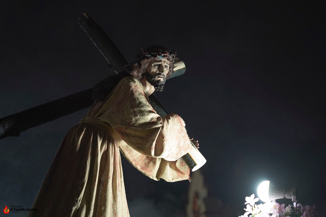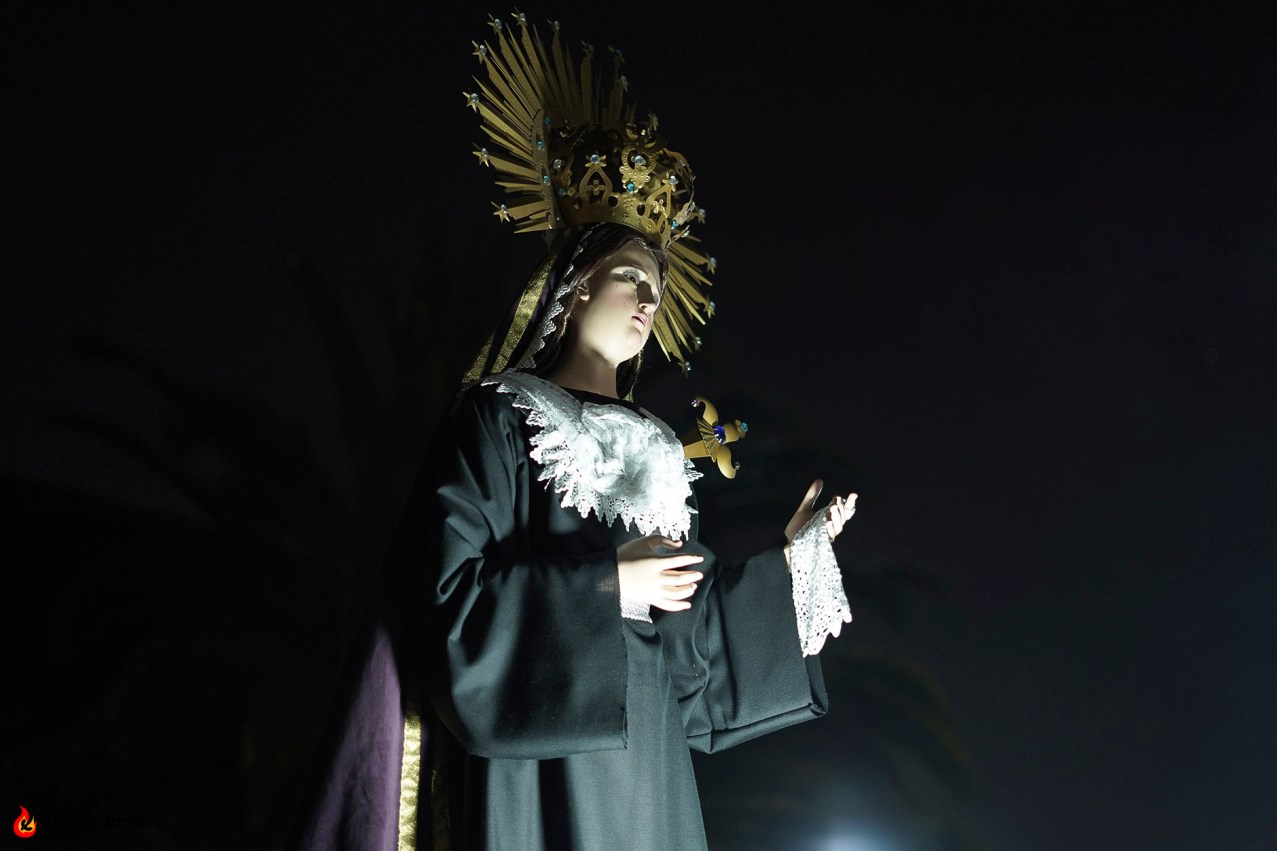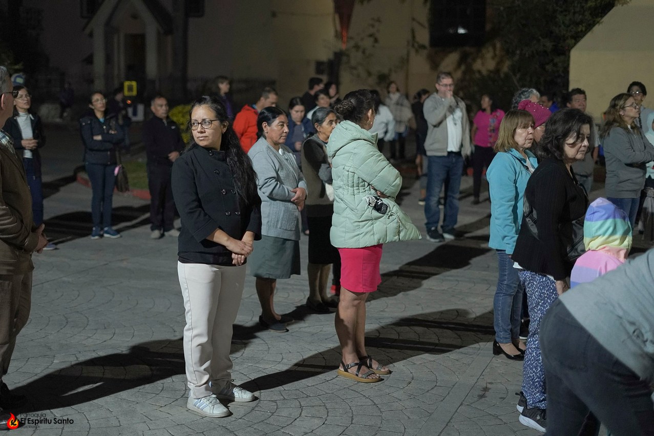 Nuestras imágenes fueron llevadas en hombros por sus devotos, a través del parqueo interno, recorriendo cada una de las estaciones del Vía Crucis, acompañadas por marchas fúnebres y cantos de la época.