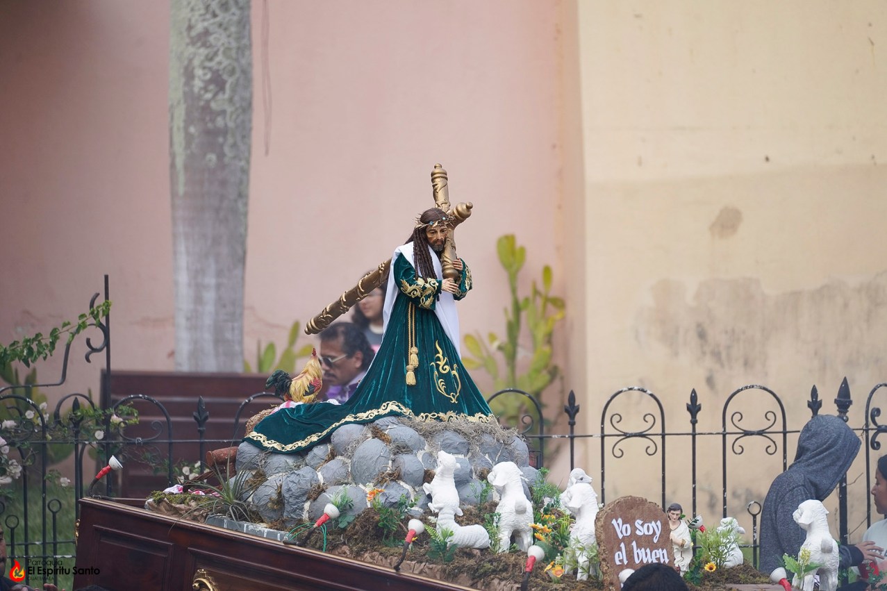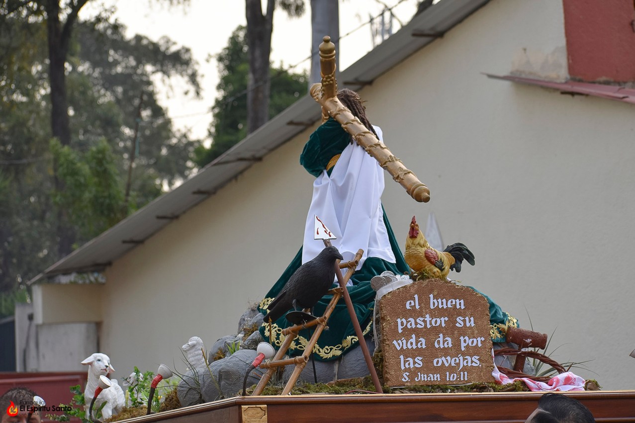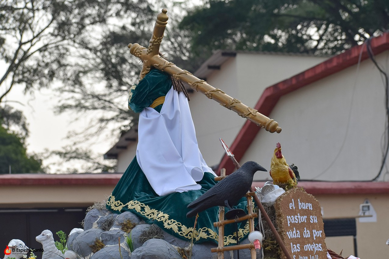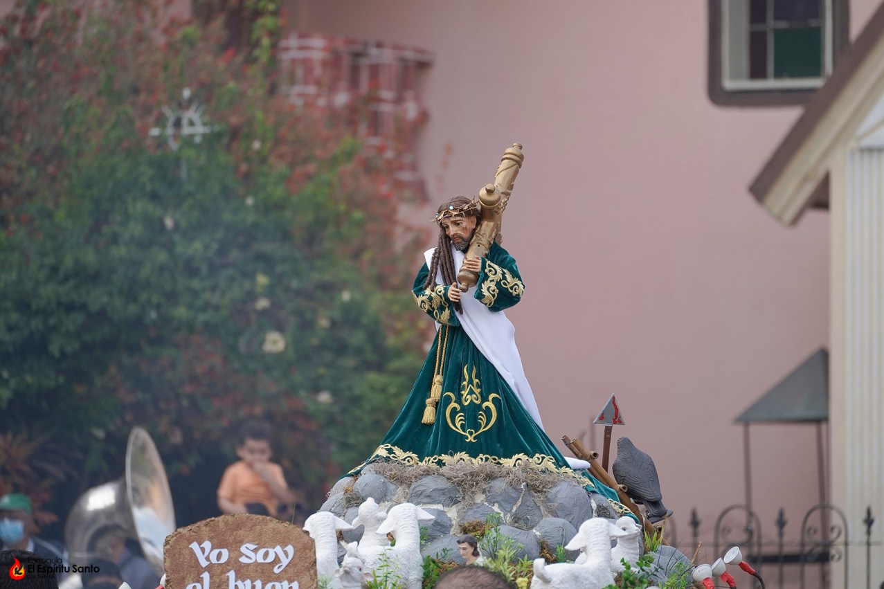 El cortejo procesional dio inicio a las 4:30 p.m. saliendo de nuestra capilla de Guadalupe; la alegoría elegida para este año fue: “Yo soy el Buen Pastor”, tomado del evangelio según san Juan (10, 11), el cual fue presentado en un paisaje natural formado por flores silvestres de diversos colores y, sobre una pequeña colina de piedras en el centro del anda, se pudo apreciar la imagen de Jesús con la cruz a cuestas. El conjunto fue complementado con ovejas distribuidas en todo el mueble.