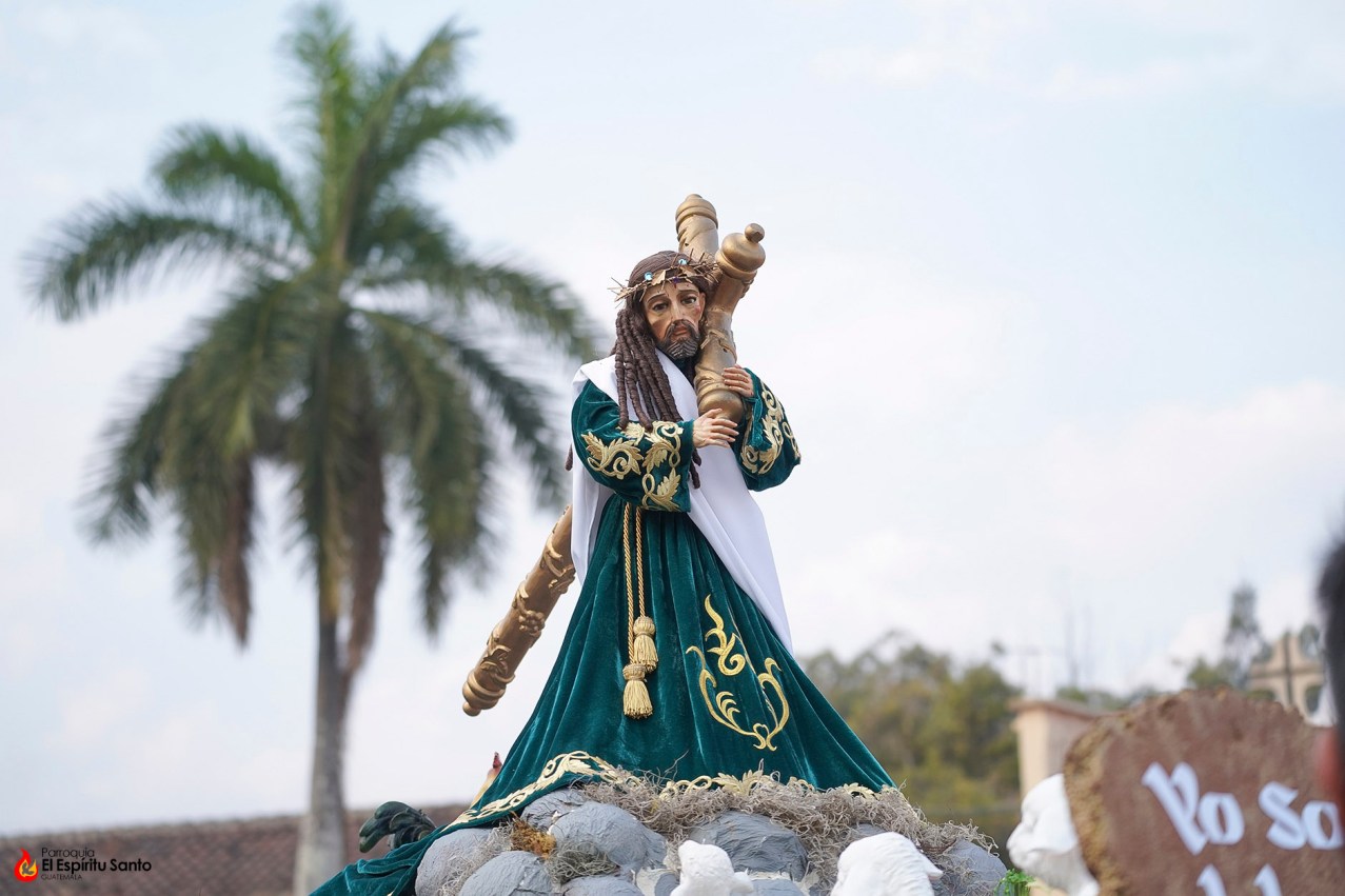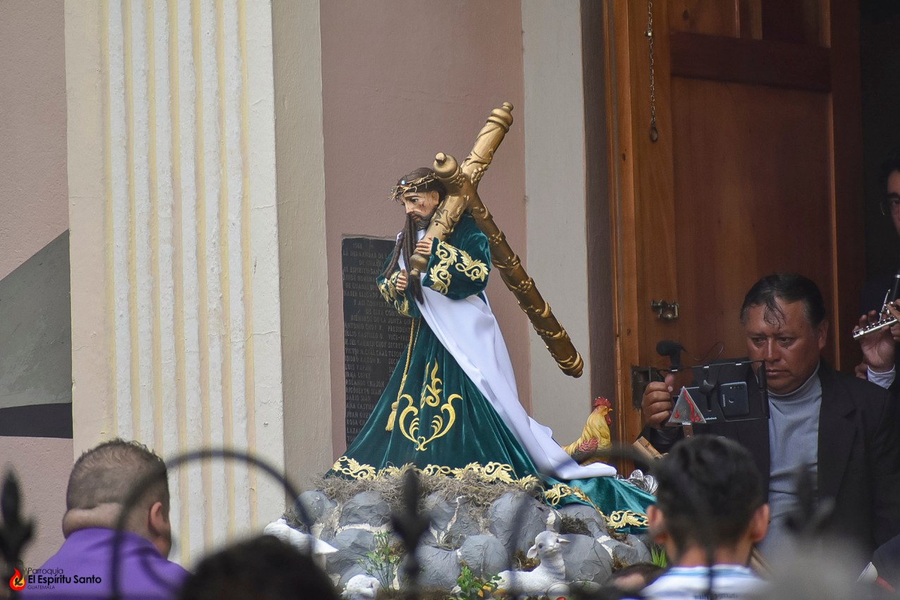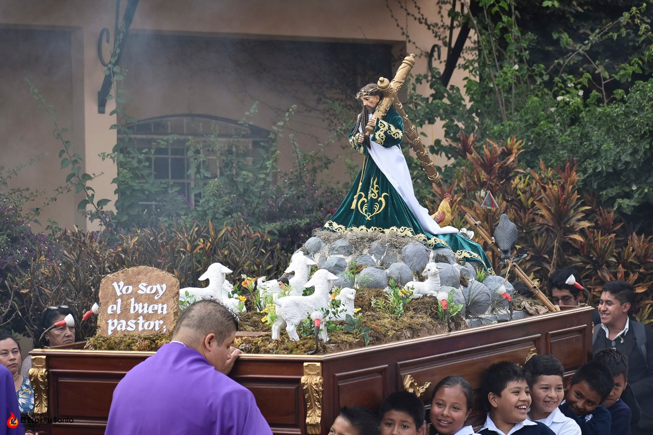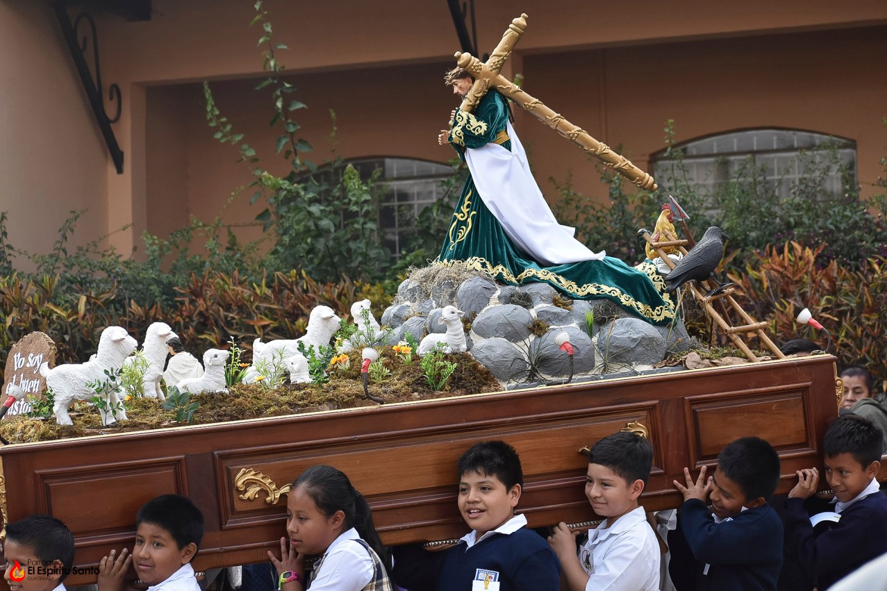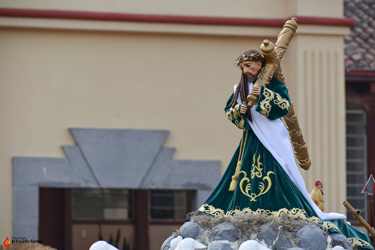 El cortejo procesional dio inicio a las 4:30 p.m. saliendo de nuestra capilla de Guadalupe; la alegoría elegida para este año fue: “Yo soy el Buen Pastor”, tomado del evangelio según san Juan (10, 11), el cual fue presentado en un paisaje natural formado por flores silvestres de diversos colores y, sobre una pequeña colina de piedras en el centro del anda, se pudo apreciar la imagen de Jesús con la cruz a cuestas. El conjunto fue complementado con ovejas distribuidas en todo el mueble.