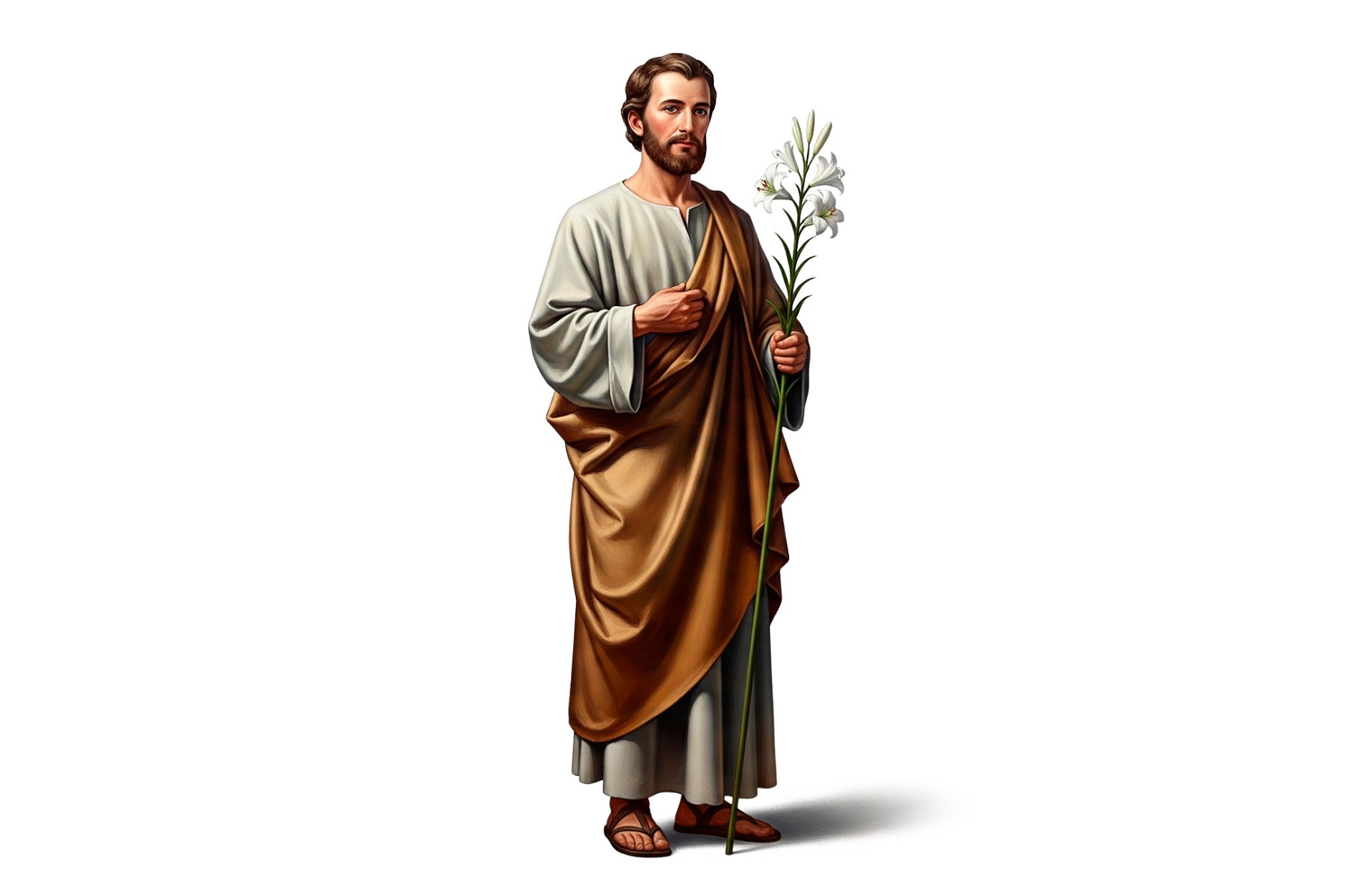 José estaba desposado con María, su prometida. Un día descubrió que ella esperaba un hijo, sin saber aún que se trataba de una obra divina. Como era un hombre justo y bueno, pensó en separarse de ella en secreto, para evitarle cualquier castigo. En medio de esa confusión, un ángel del Señor se le apareció en sueños y le dijo: «José, no temas recibir a María por esposa, porque el hijo que lleva en su seno es del Espíritu Santo. Dará a luz un hijo y tú le pondrás por nombre Jesús, porque salvará a su pueblo de sus pecados». José despertó y, confiando en Dios, obedeció con total fidelidad.