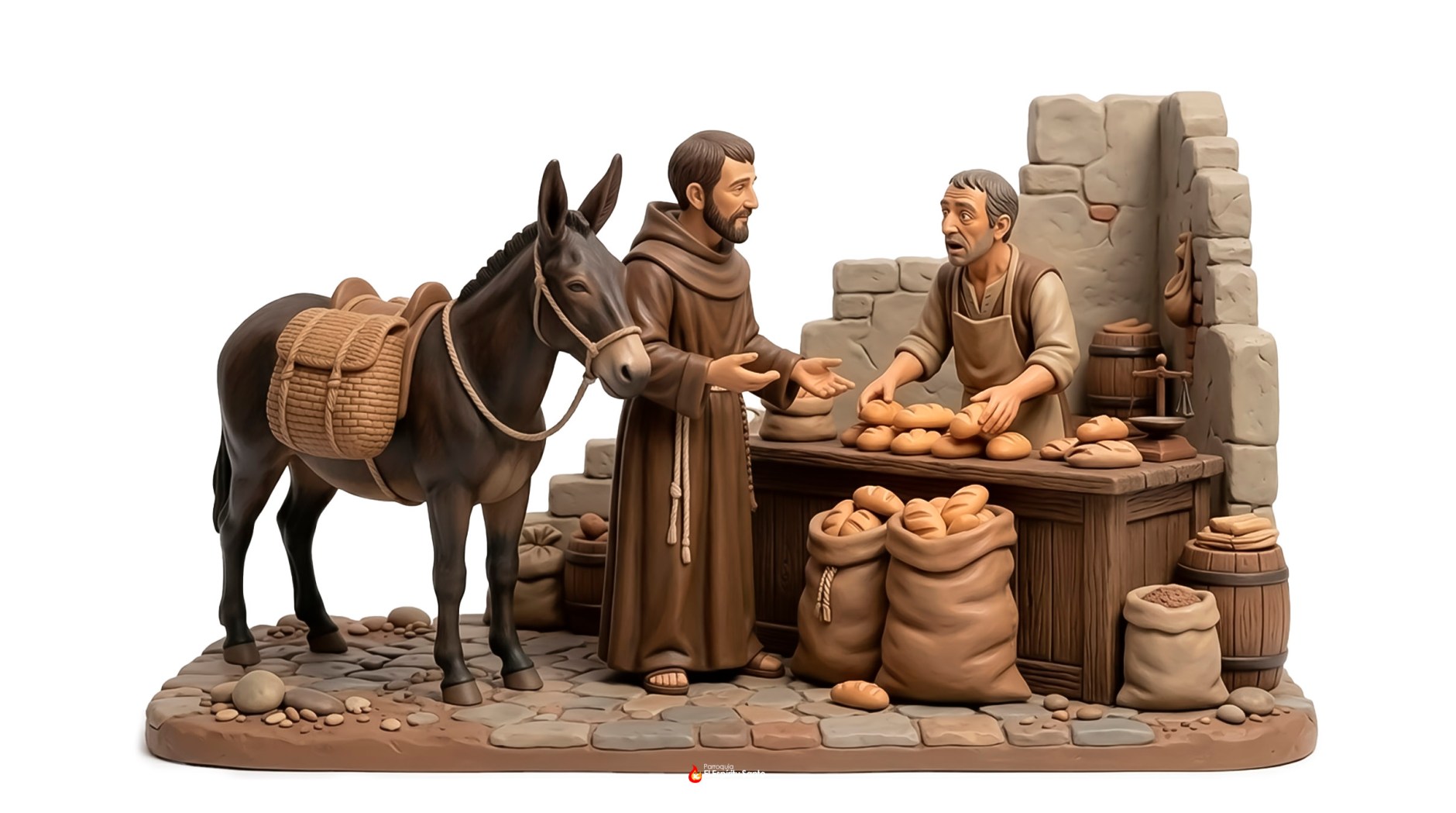 Con generosidad, el comerciante comenzó a colocar panes dentro de las alforjas, dispuesto a colaborar con las obras de caridad que el Hermano Pedro realizaba en favor de los pobres y de los enfermos. Sin embargo, algo comenzó a llamar su atención: por más panes que introducía, las alforjas parecían no llenarse nunca. Continuaban recibiendo uno tras otro, como si siempre quedara espacio para más.