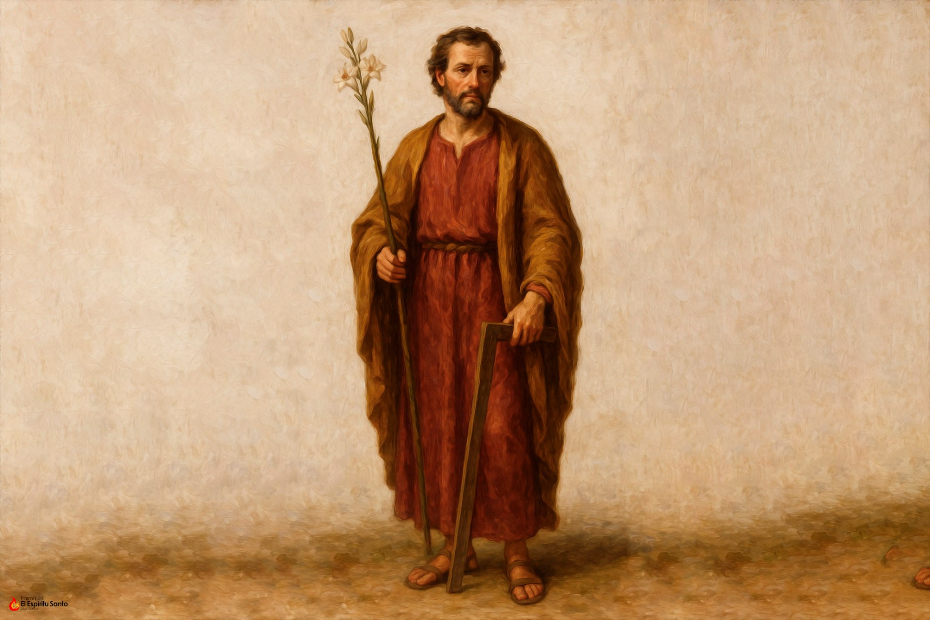 José, trabajador esforzado desde su juventud, se aplicó con ahínco a su oficio de carpintero y trabajó con dolor y fatiga para alimentar y cuidar a su esposa la Virgen María y a su hijo Jesús. Procuró enseñar el oficio a Jesús y a éste le llamaban en Nazaret, su pueblo, «el hijo del carpintero». Señal de que José había dejado el recuerdo de su buen hacer en el oficio.