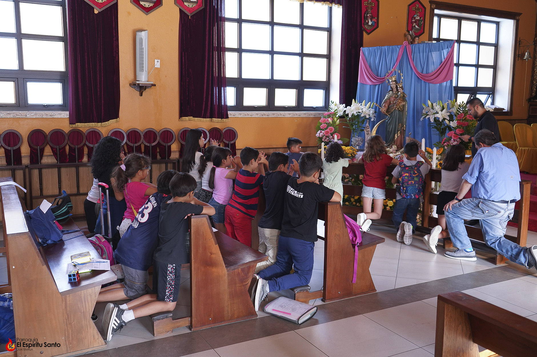 Un detalle muy especial que pudieron vivir los niños de catequesis, el pasado sábado 04 de mayo, fue el recibir la misma delante de nuestra imagen de María Auxiliadora, que durante este mes se encuentra en un bonito altar, además de recibir la bendición solemne de la Auxiliadora de manos del diácono Wilmer Delgadillo quien estuvo brindando apoyo durante la jornada.