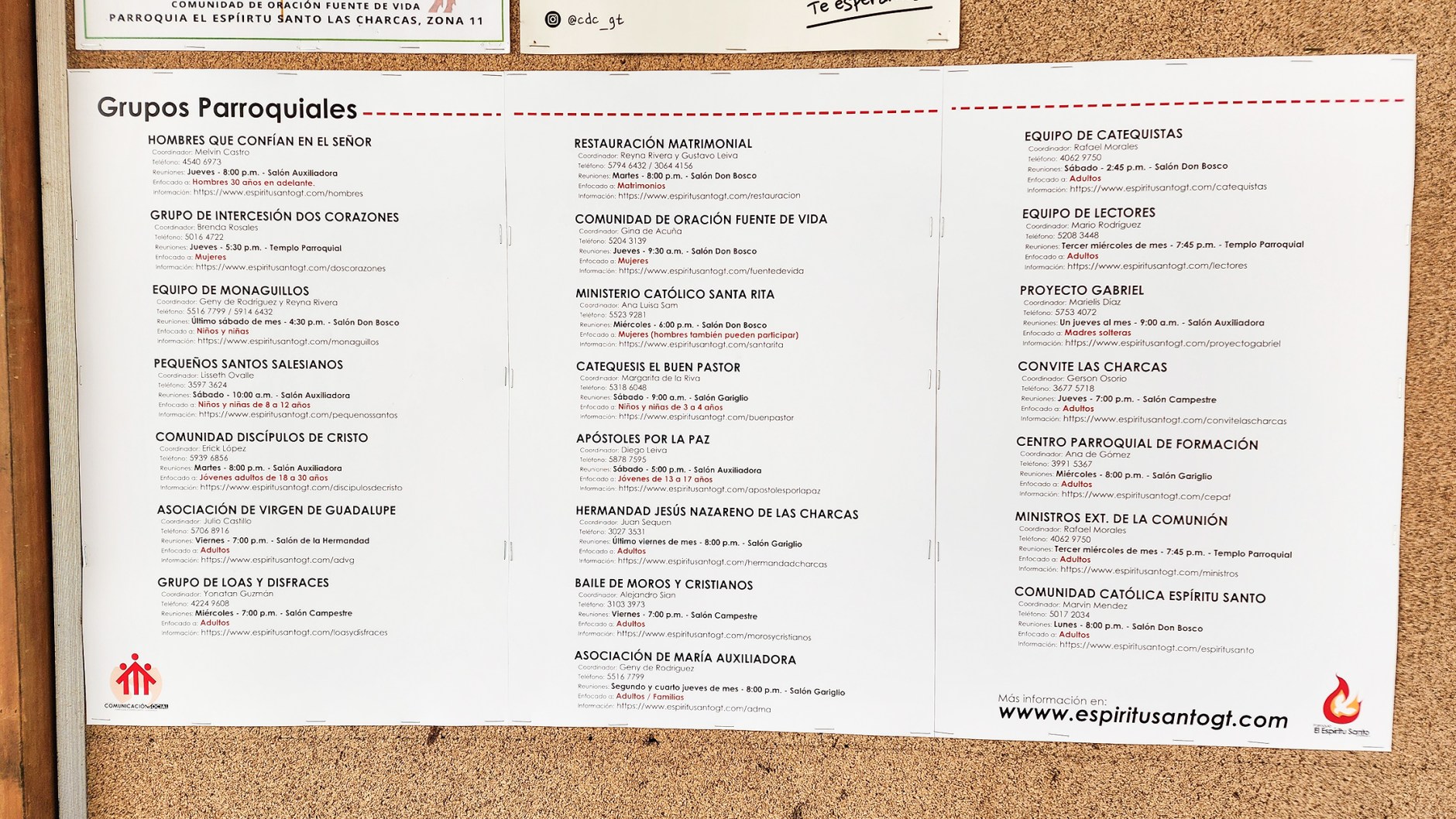 Desde este viernes, 19 de julio, hemos colocado en el ingreso a nuestro templo parroquial el directorio de nuestros grupos parroquiales.