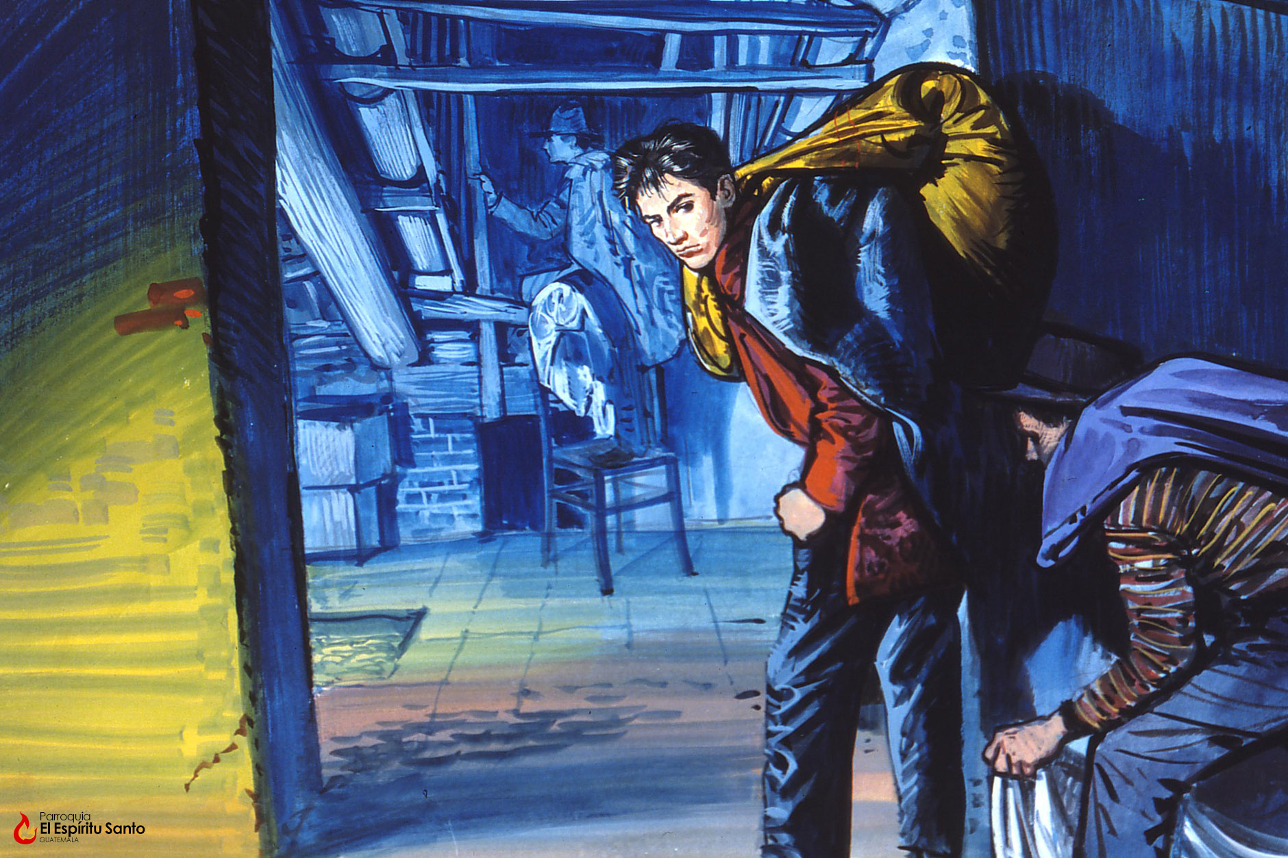 Un grupo de jóvenes organizó una procesión con un estandarte de la Virgen que tenía esta inscripción: «Santa María, socorred a los necesitados».