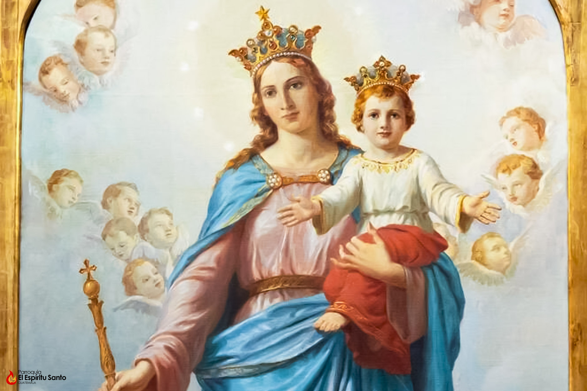 El Niño Jesús también porta una corona sobre su cabeza, pues Él es el Rey de Reyes.