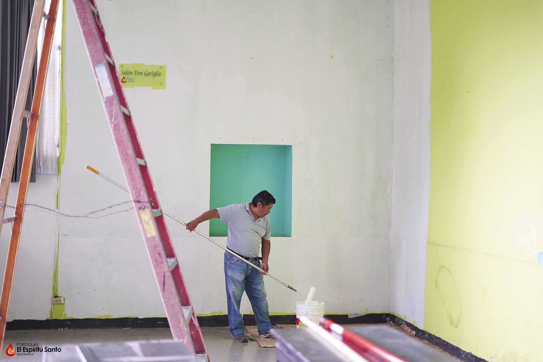 Luego de haber pintado y renovado nuestro salón Don Bosco, se ha iniciado el trabajo de pintura del Salón Gariglio.