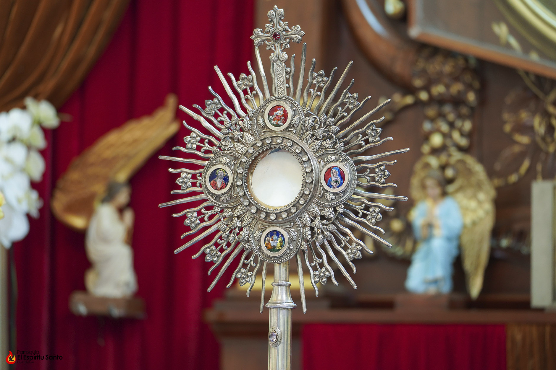 Creo que en esta Hostia Santa están verdaderamente tu Cuerpo, Sangre, Alma y Divinidad. Te adoro humildemente y te agradezco todos tus beneficios, especialmente el de haberme dado por abogada a tu Madre María Santísima, y haberme llamado para visitarte en esta Iglesia.