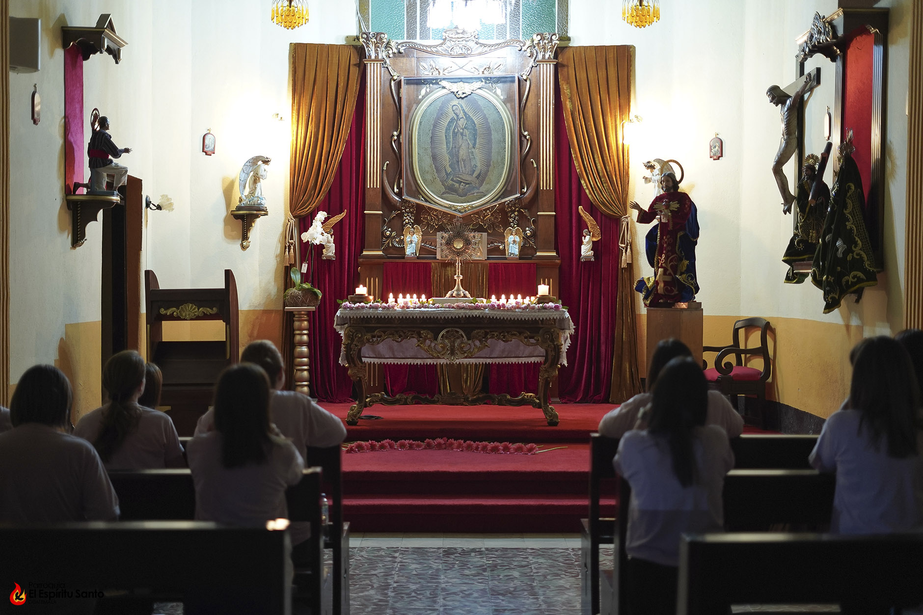 La Adoración Eucarística inició las 6:00 p.m., la cual se realizó en la Capilla de Guadalupe con la participación de las servidoras que tienen a su cargo la animación del grupo parroquial. Además de compartir un momento ante Jesús Sacramentado, participaron de una amena charla, además de algunos ejercicios con el objetivo de ayudarles a recordar el objetivo del trabajo pastoral que realizan: ser un instrumento del Señor.
