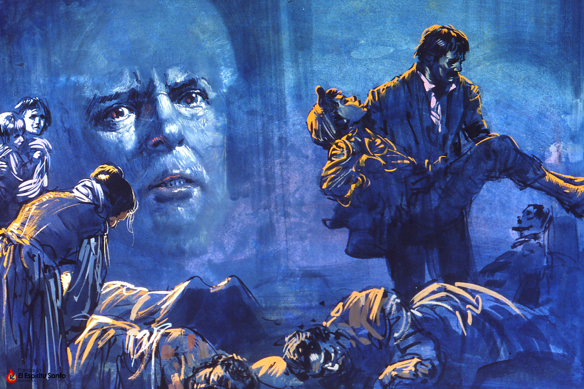 Enseguida aparecieron por el patio otros muchos monstruos como el anterior pero más pequeños, y los muchachos fueron quedando acorralados contra las paredes y muchos jóvenes quedaron tendidos por tierra y como muertos.