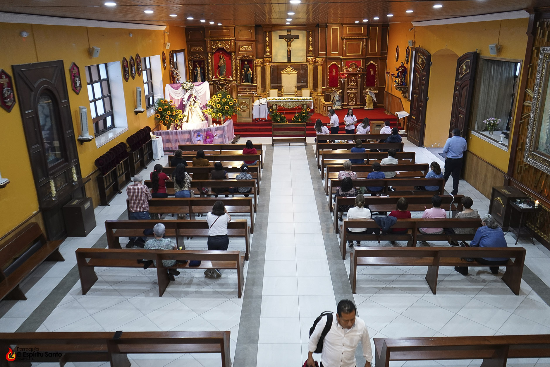 La noche finalizó con la celebración de la Eucaristía, presidida por nuestro párroco, padre Carlos Macz, quien señaló que, aquella persona que reza el Rosario tiene paz en su vida pues, al rezarlo, debemos entregarle a la Virgen todas nuestras penas y preocupaciones.