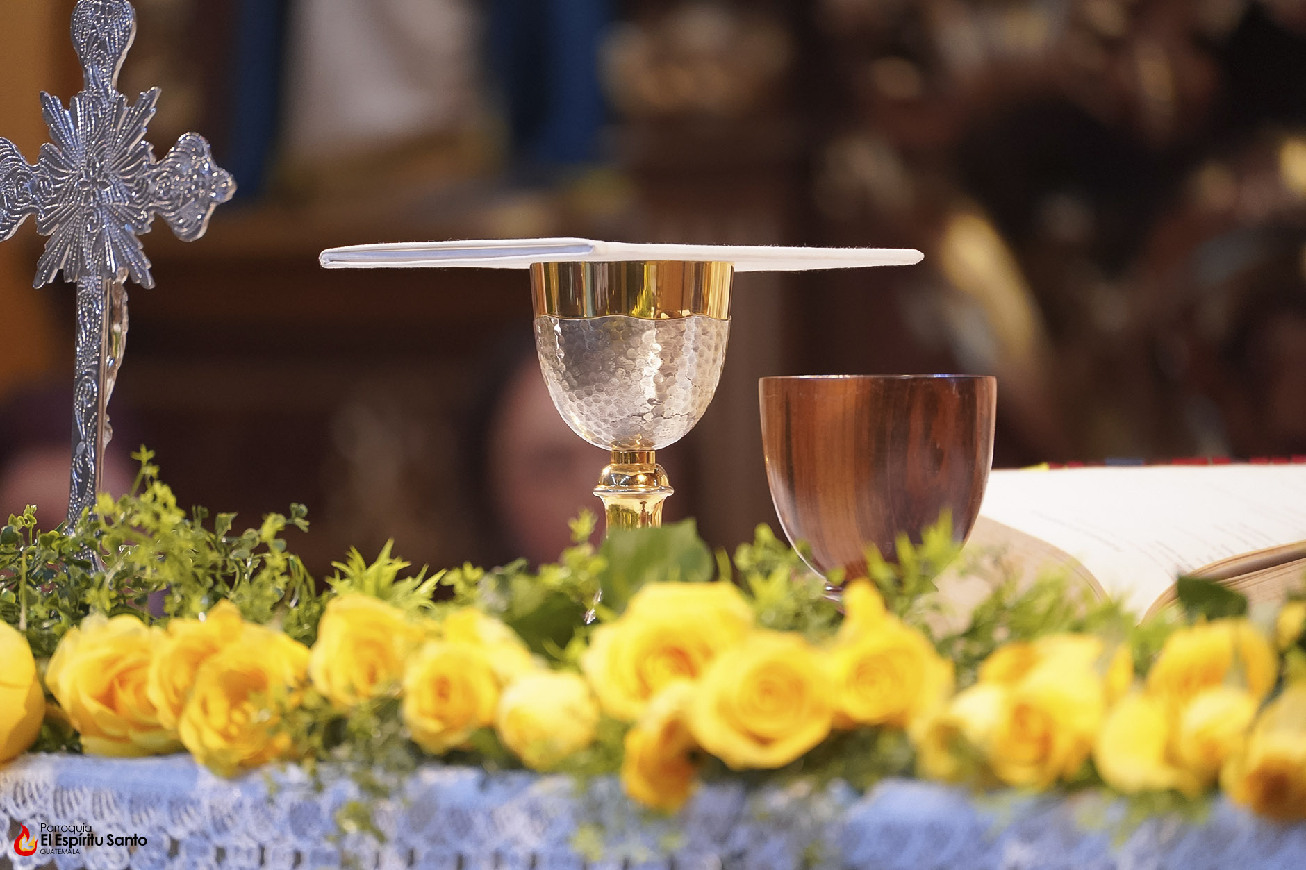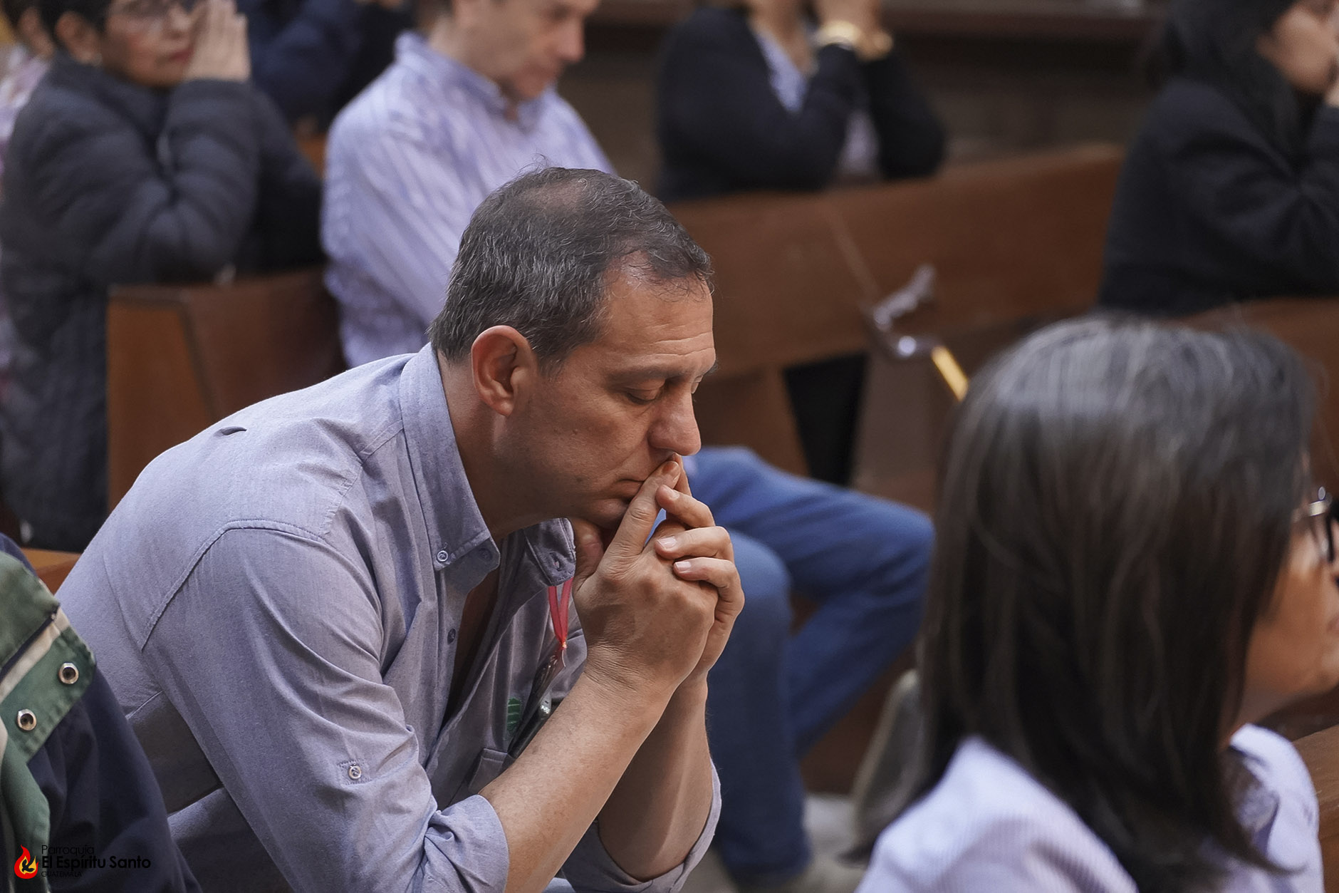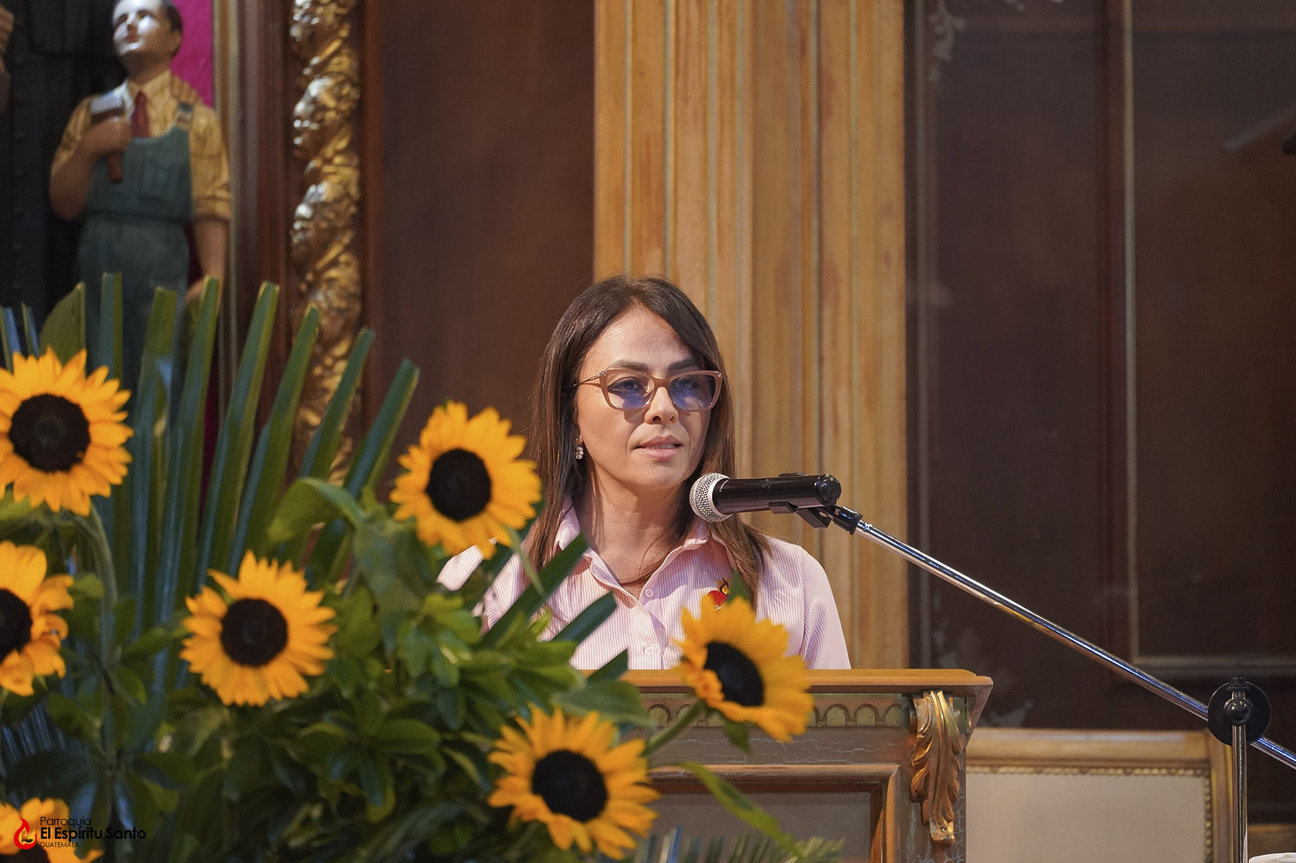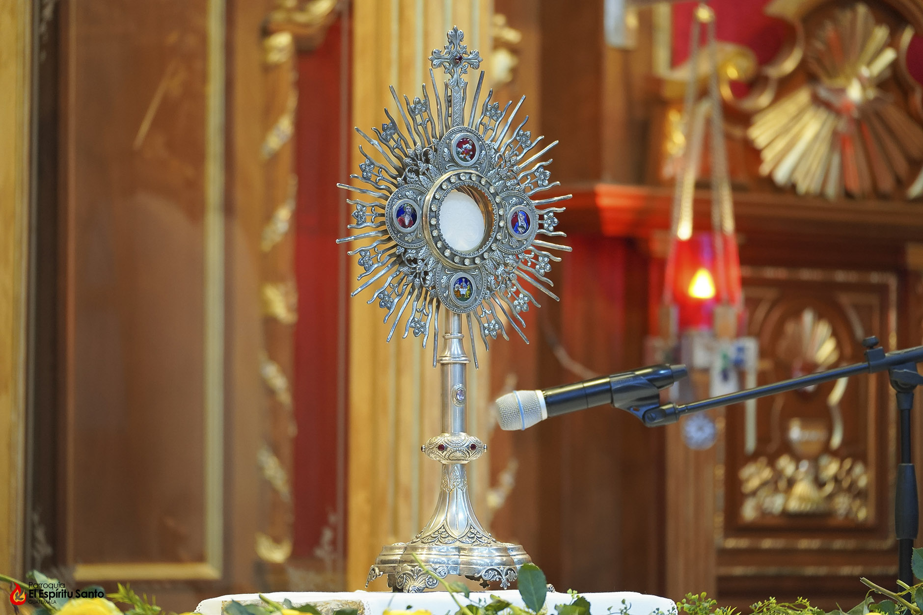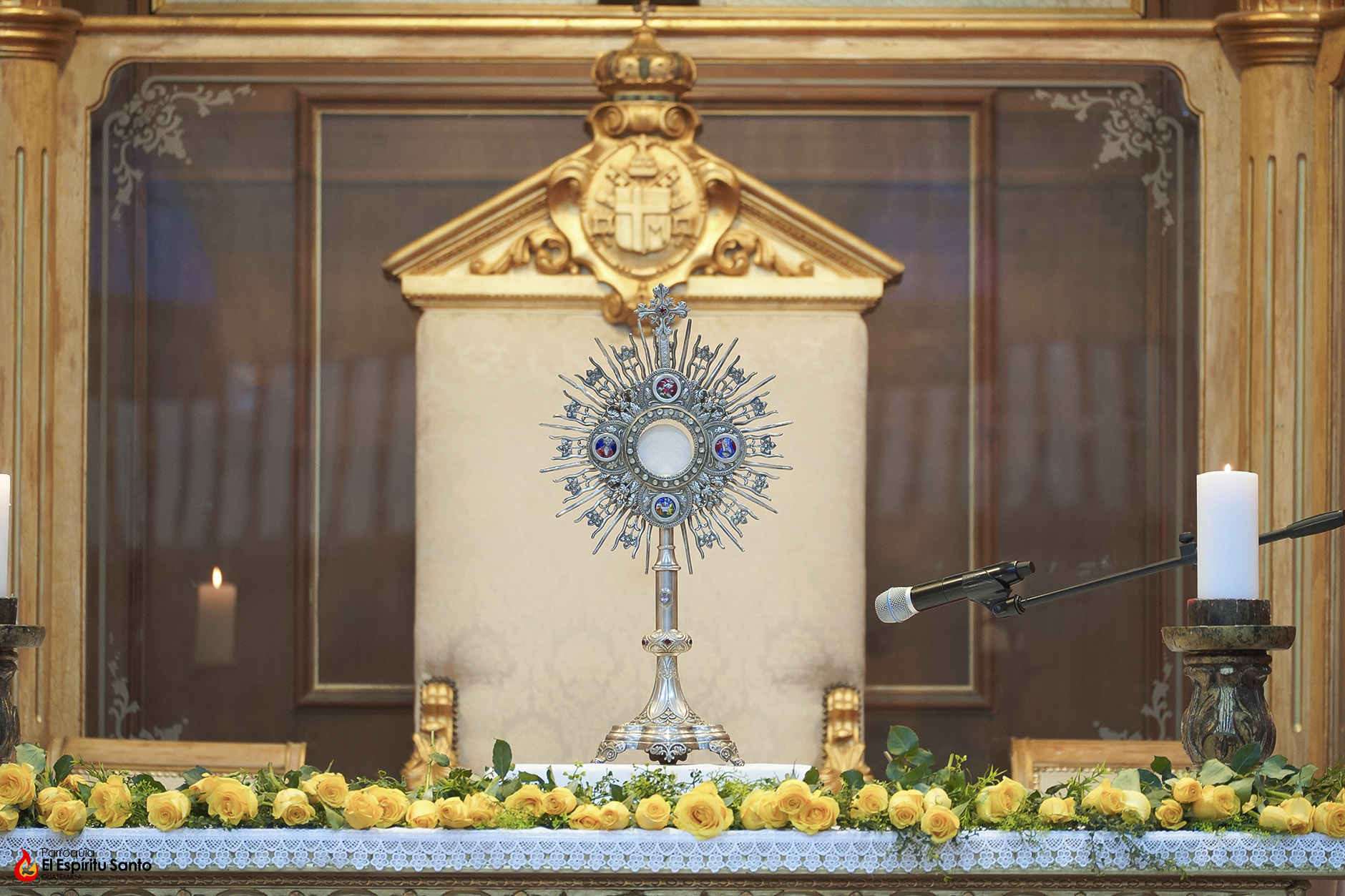 La jornada arrancó con el rezo del Santo Rosario ante el altar de la Virgen para luego dar paso a una hora de Adoración Eucarística. Los presentes obsequiaron una rosa amarilla a Jesús Sacramentado, la cual colocaron sobre el altar.