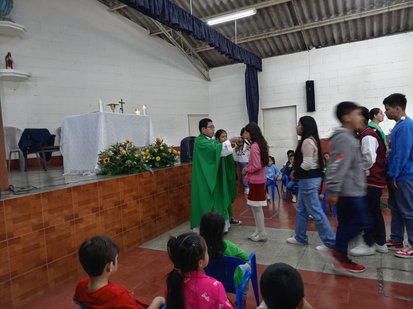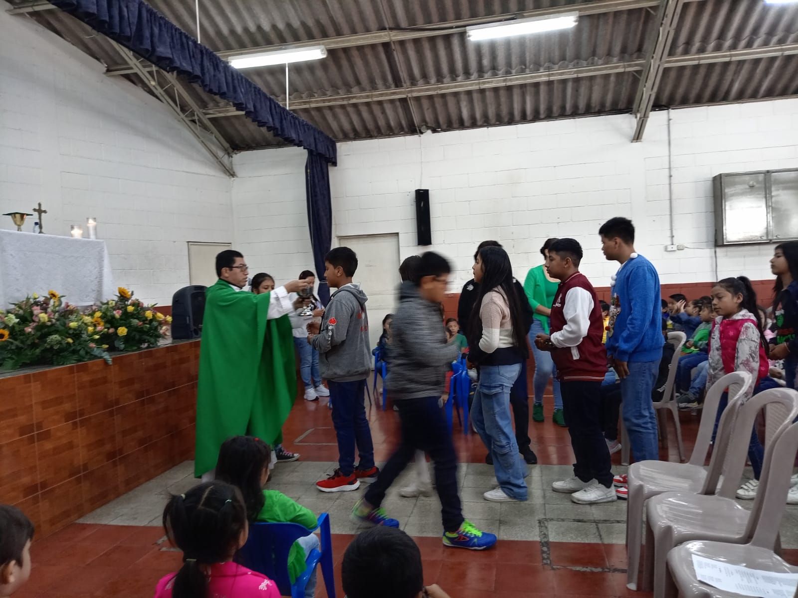 El día inició con la celebración de la Santa Misa, presidida por nuestro párroco, Padre Carlos Macz, SDB, quien recordó a los estudiantes la importancia de cumplir con sus deberes pues, de esta forma, también se alaba al Señor.