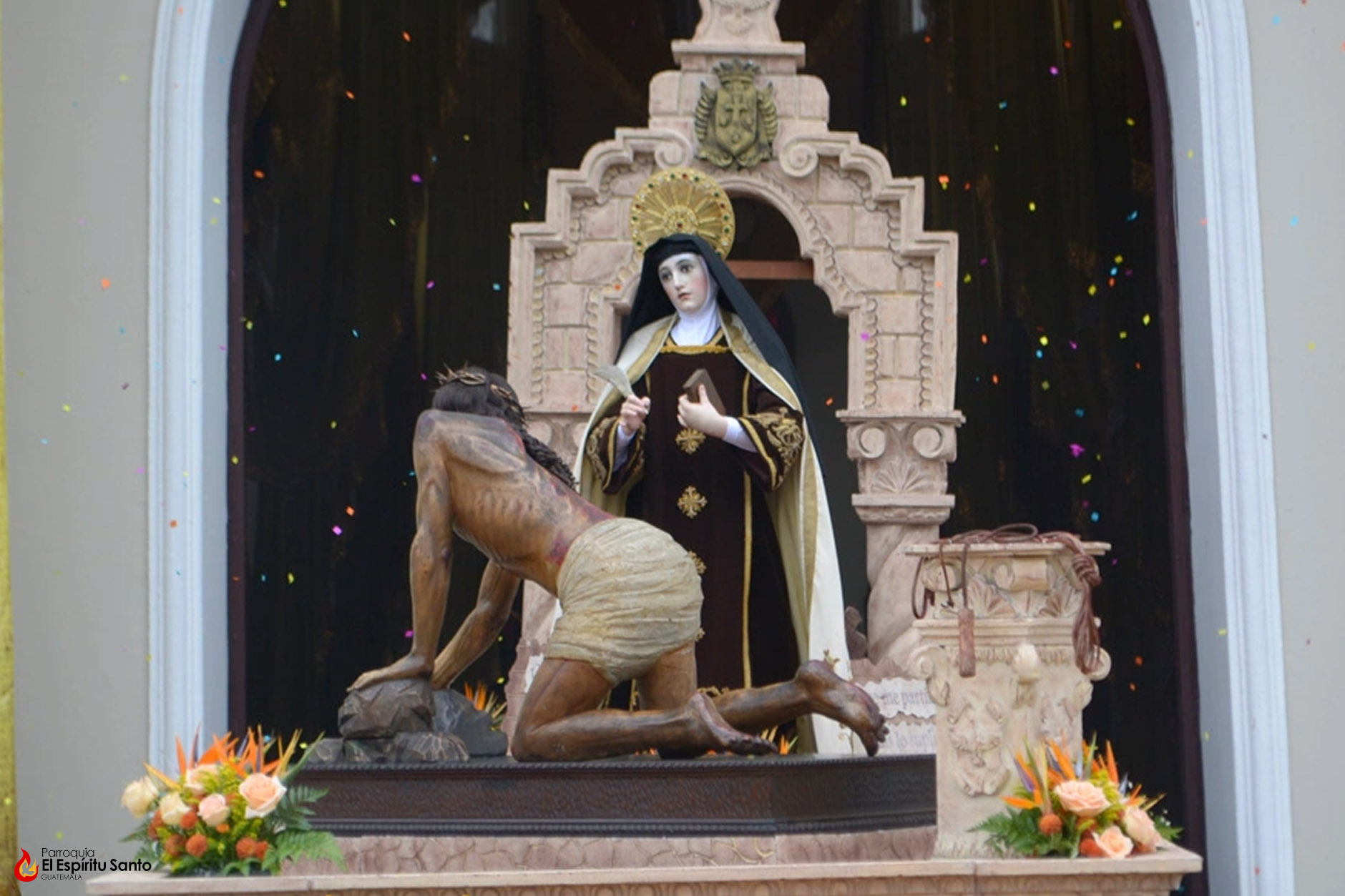 Oh, Santa Teresa, Virgen seráfica, querida esposa de Tu Señor Crucificado, tú, quien en la tierra ardió con un amor tan intenso hacia tu Dios y mi Dios, y ahora iluminas como una llama resplandeciente en el paraíso, obtén para mí también, te lo ruego, un destello de ese mismo fuego ardiente y santo que me ayude a olvidar el mundo, las cosas creadas, aún yo mismo, porque tu ardiente deseo era verle adorado por todos los hombres.