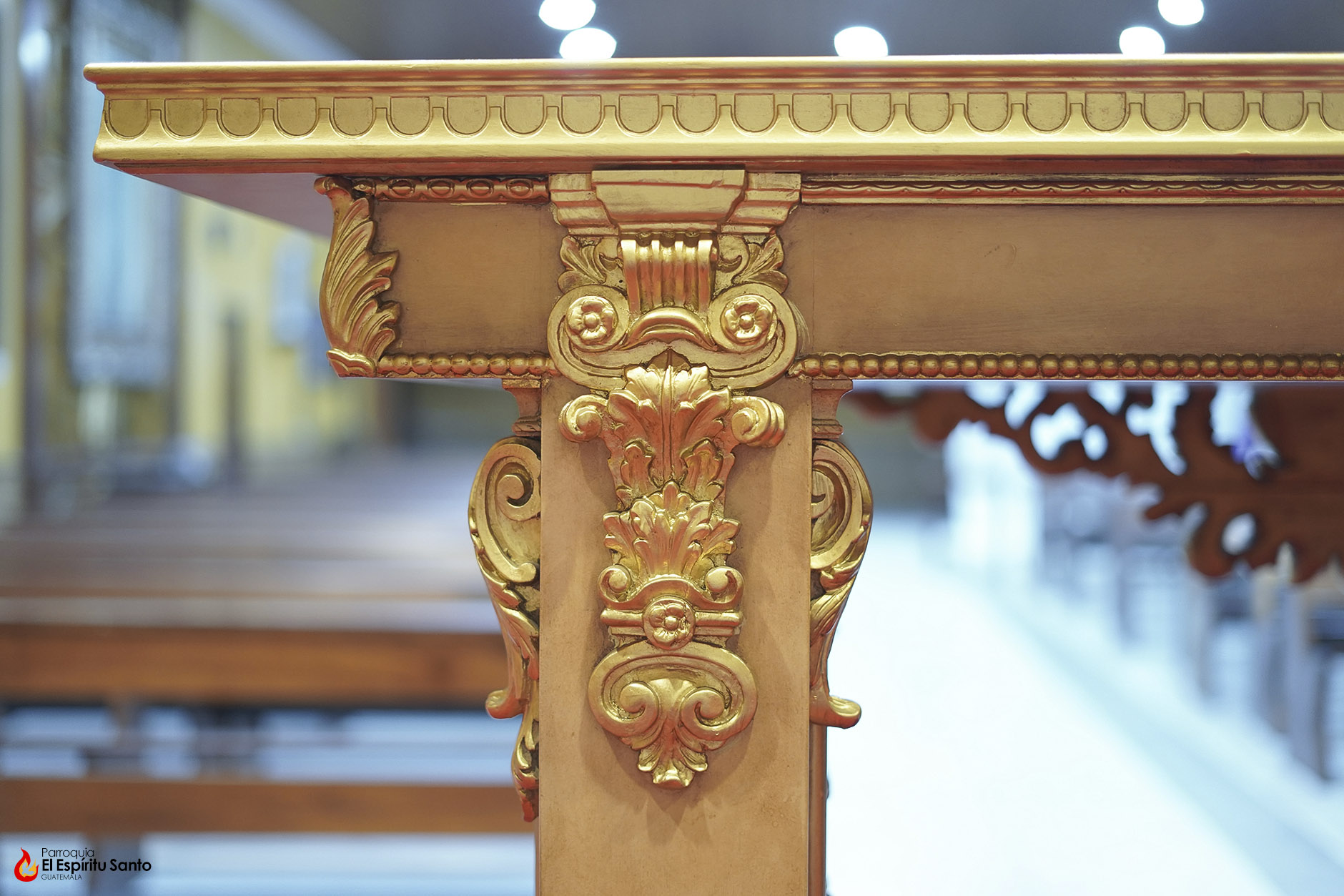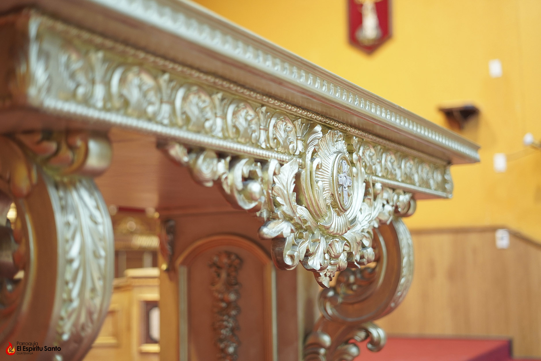 La sede y el lambrín hoy en día pueden apreciarse en el Altar Mayor de nuestra parroquia, como fieles testigos de aquella especial Eucaristía celebrada por el ahora santo ante miles de guatemaltecos.