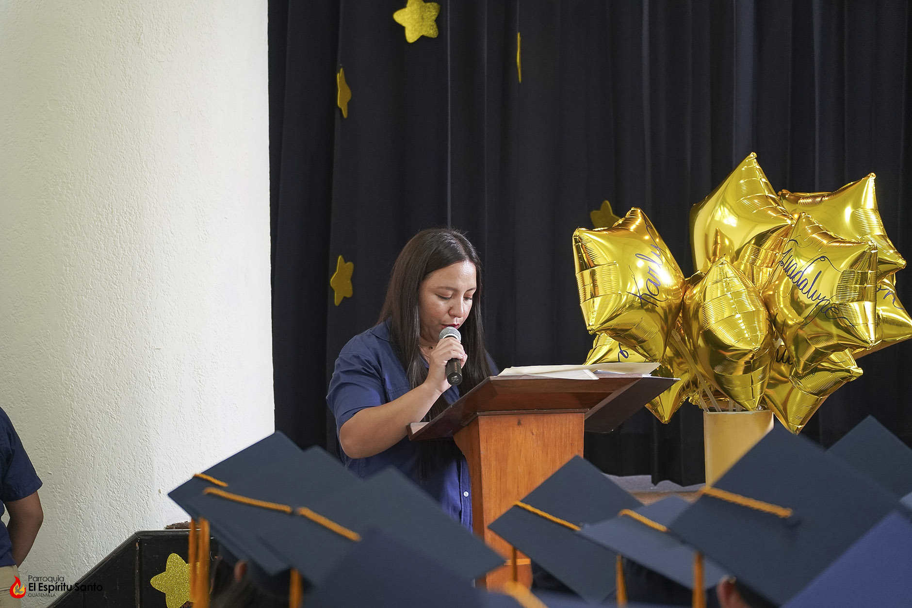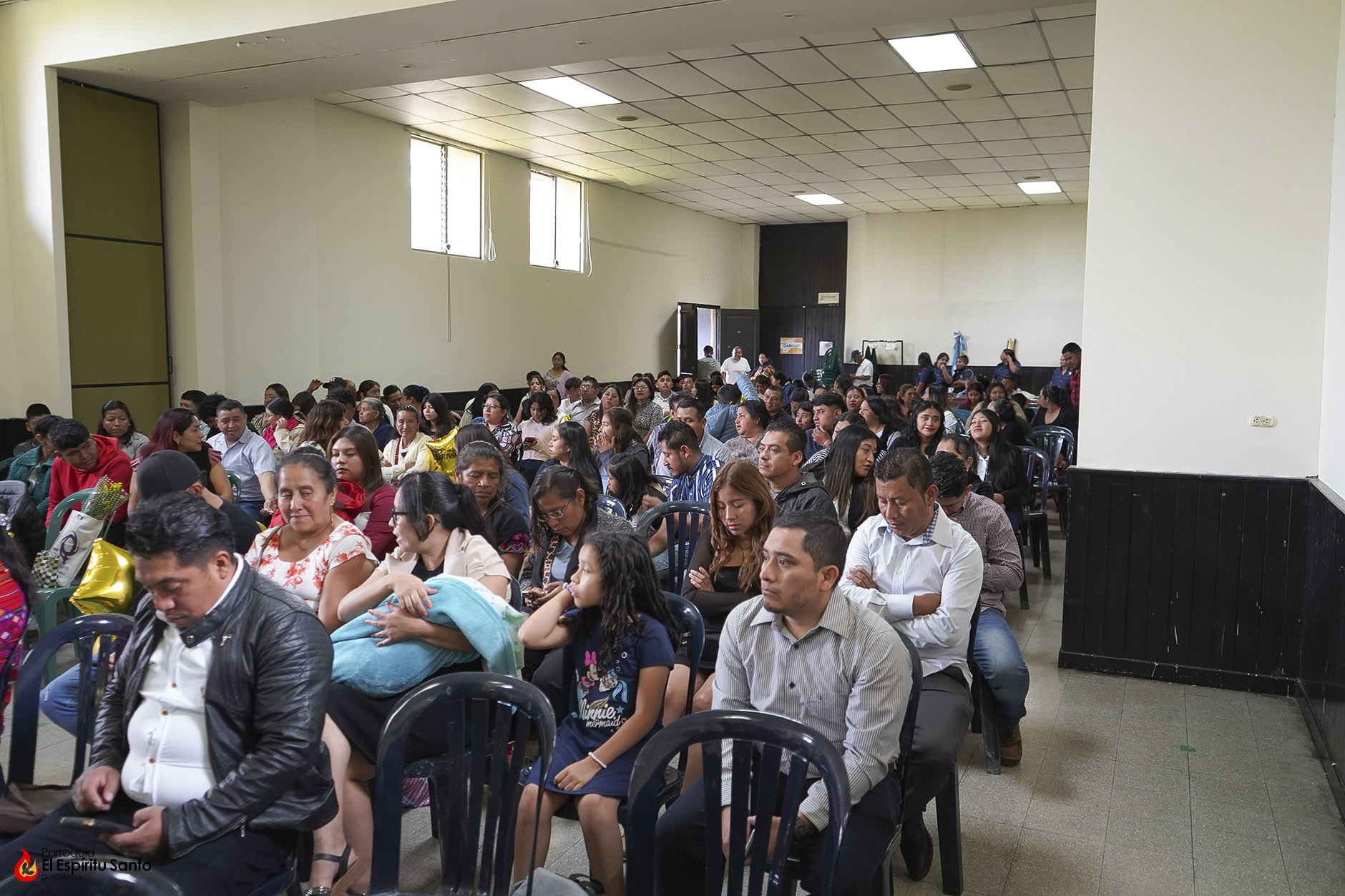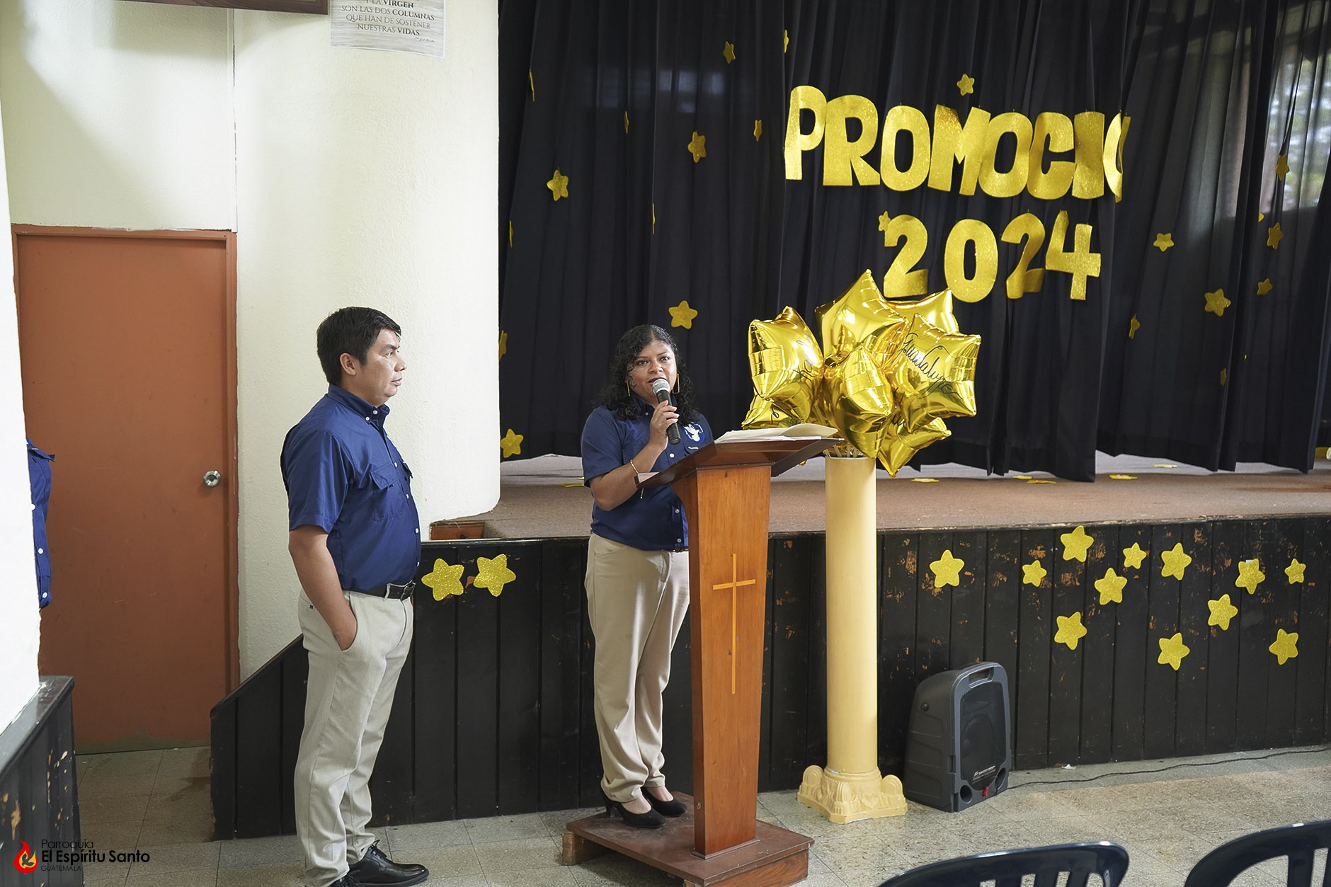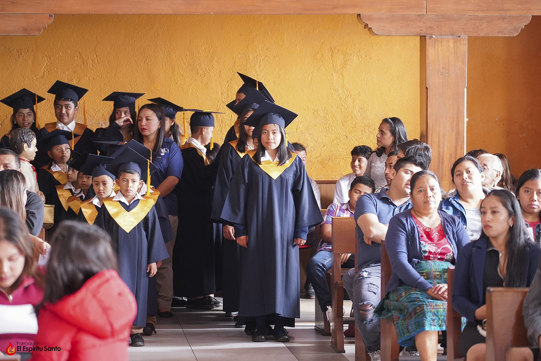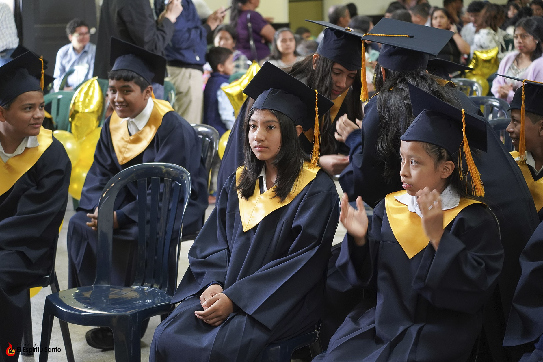 Posteriormente, los niños y sus familias se trasladaron hacia el Salón Don Bosco en donde se llevó a cabo el acto de clausura, el cual inició con el ingreso de las banderas de Guatemala, de la Iglesia y del Centro Escolar; luego se entonó el himno de Guatemala, seguido del himno de Centroamérica y el Salesiano.