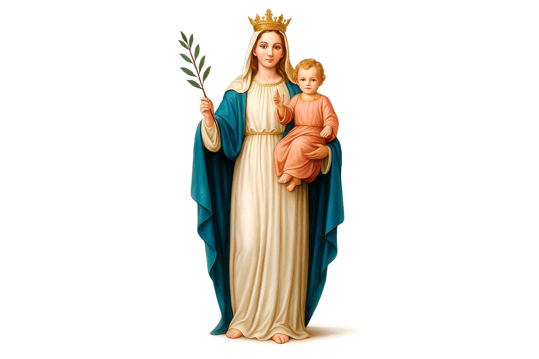 Un detalle hermoso de esta advocación es que la Virgen sostiene en su mano derecha una palma de oro, signo de victoria y paz. En su brazo izquierdo carga al Niño Jesús, recordándonos que la verdadera paz solo se encuentra en Cristo.